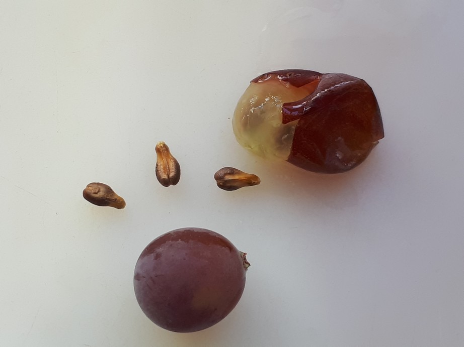 Les grains contiennent 2 ou 3 pépins qui craquent sous la dent. La pulpe se détache de la peau par simple pression du grain. Elle est très sucrée, juteuse, plutôt gélatineuse. Il est possible d'en tirer un très bon jus de raisin.