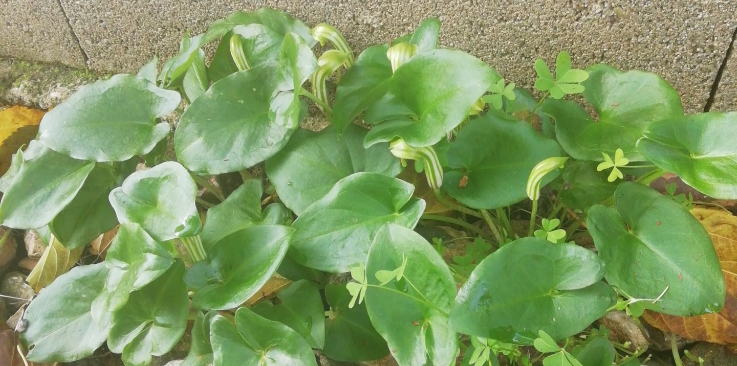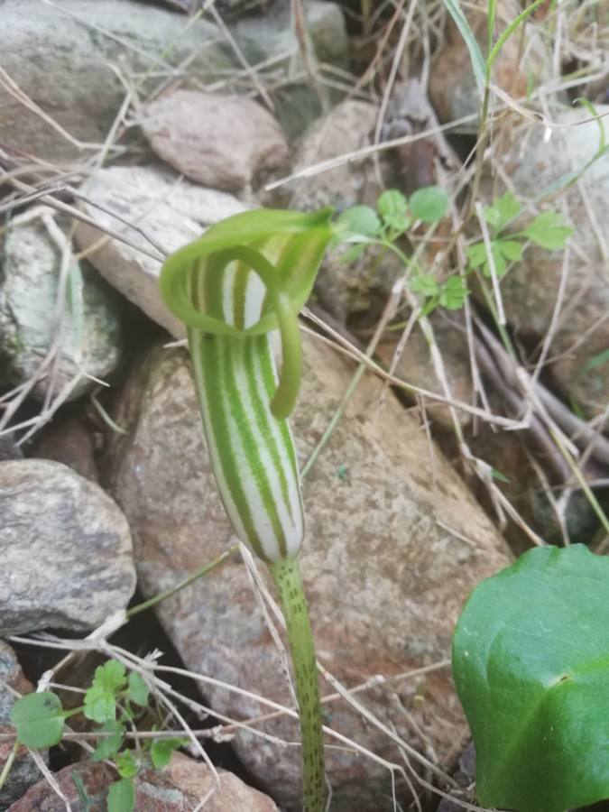 C'est peut-être Arisarum vulgare (synonyme Arum arisarum, famille des aracées, présent en Corse).