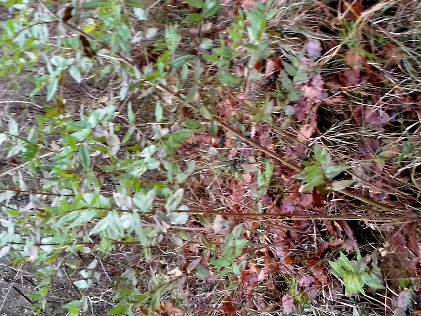 Quelle serait cette plante souvent observée sur les talus caillouteux (type causse) bordant les routes en sous-bois en Dordogne et dans le Lot ? Je n'ai jamais pu observer les fleurs , seulement les tiges non ramifiées, raides, hauteur maximum 80cm , en groupes parallèles à effet très graphique. Feuilles simples (taille de la feuille de laurier), peut-être semi-persistantes, opposées. Ce doit être un semi arbrisseau, cela évoque les chèvrefeuilles arbustifs, ou les millepertuis à grandes feuilles, mais la caractéristique la plus frappante est la végétation en tiges nombreuses, uniques et parallèles.