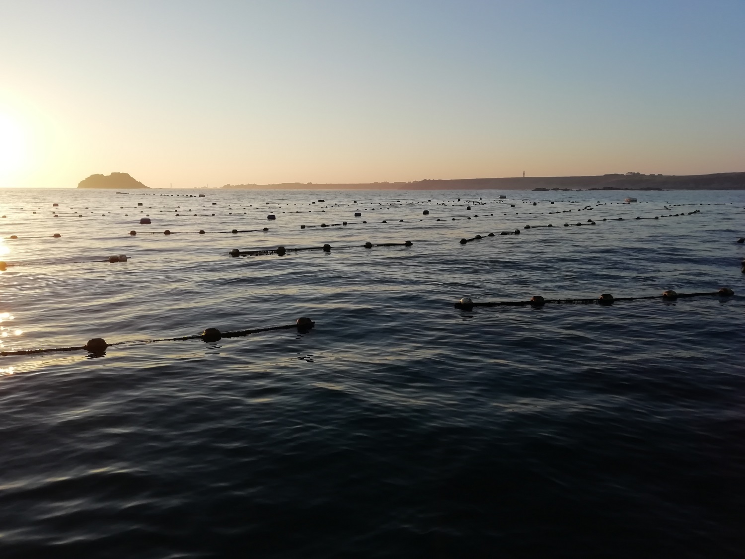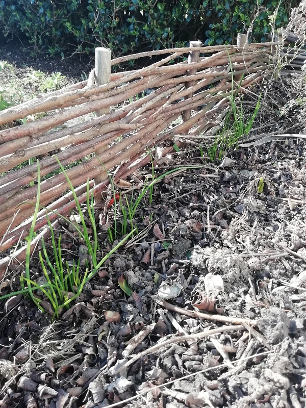 Et sinon, quand la nature bosse toute seule, ça donne une ciboulette qui se réveille dans la jardinière et traverse le paillage de feuilles mortes (de la haie juste derrière) : Et des semis spontanés de persil qui apparaissent, dommage c'est dans l'allée ils risquent de finir piétinés mais je vais leur laisser leur chance... Et pour finir, la journée de boulot a été longue aujourd'hui on était toujours en mer pour le coucher du soleil...mais le spectacle était à la hauteur de l'effort...