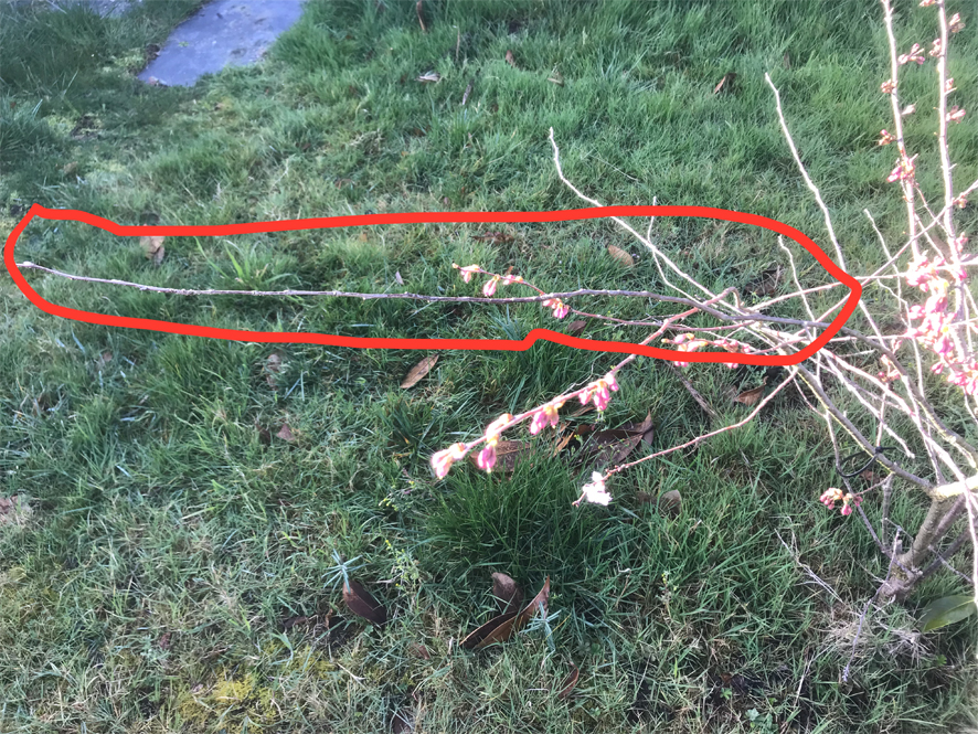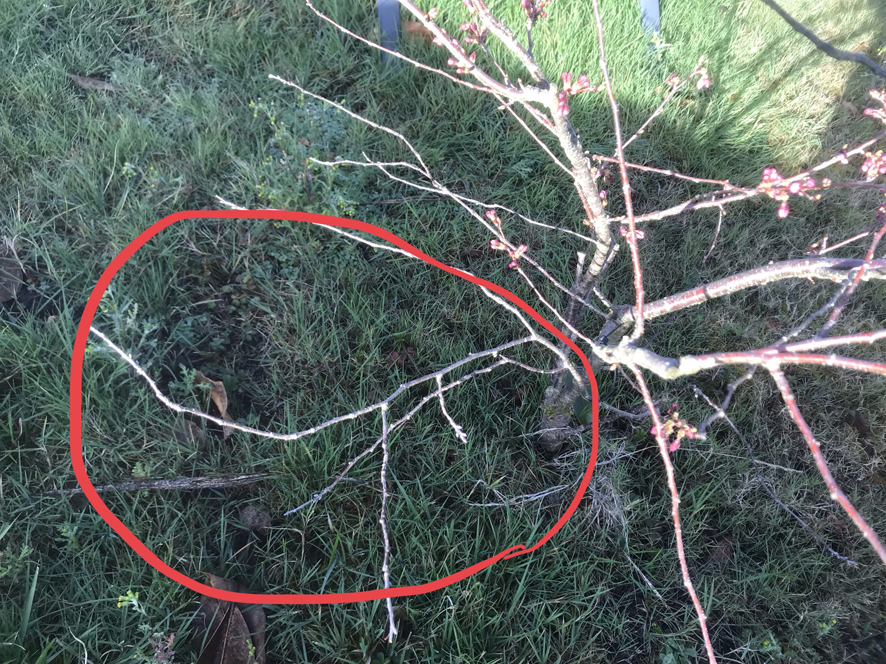 Couper les branches mortes (?) de mon jeune prunus accolade