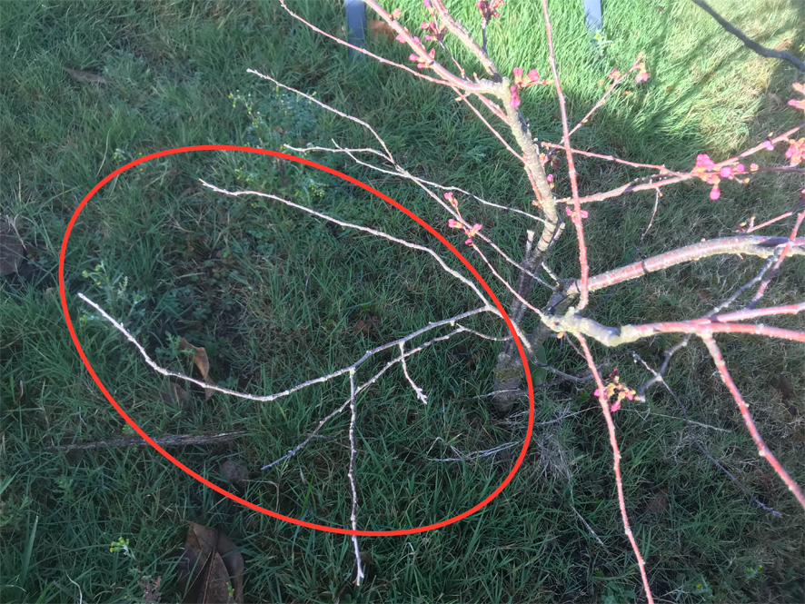 Re: Couper les branches mortes (?) de mon jeune prunus accolade