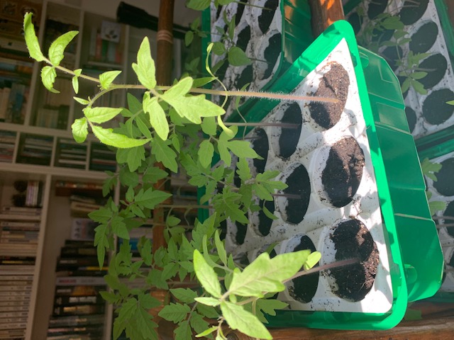 ""Mon problème va être maintenant de trouver des godets suffisamment grands pour pouvoir enterrer les tiges des tomates afin qu'elles se renforcent""