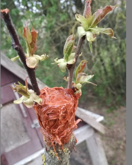 Avant hier elle a tenté des greffes de cerisier en couronne... (elle m'a envoyé des photos de ses greffes )
