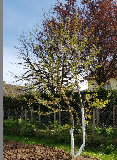 Voilà celui que j ai greffé il y a 5 ans avec un bout de ce burlat il y a peu de branches mais elles sont couvertes de fleurs...