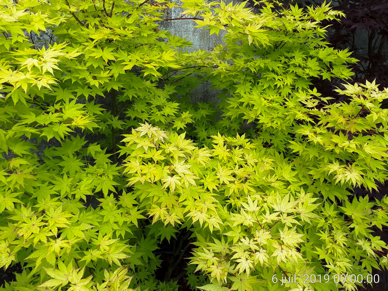 Merci ! Choisir des sujets de grande taille permet d'apprécier toute la beauté du feuillage, avec les nuances des zones plus ou moins exposées. A l'avenir j'aimerai aussi jouer sur les variations de hauteurs et de formes pour créer des espaces qui accrochent l'œil, provoque la surprise et l'émotion… Que ce soit dans ce petit jardin… ou dans un autre mieux préparé et dessiné (difficile de réunir toutes les conditions favorables à la culture des Erables du Japon : l'ombrage des grands arbres, l'orientation et la gestion du vent, la nature du sol surtout, la présence d'une grande serre, une pièce d'eau, etc...).