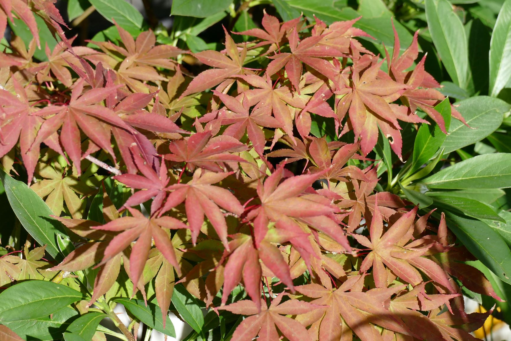 Illustration, osakazuki pour sa couleur en novembre (je le cultive en pot depuis 10 ans, taillé, mais je déconseille de réduire les prolongements).