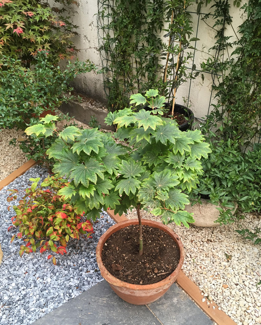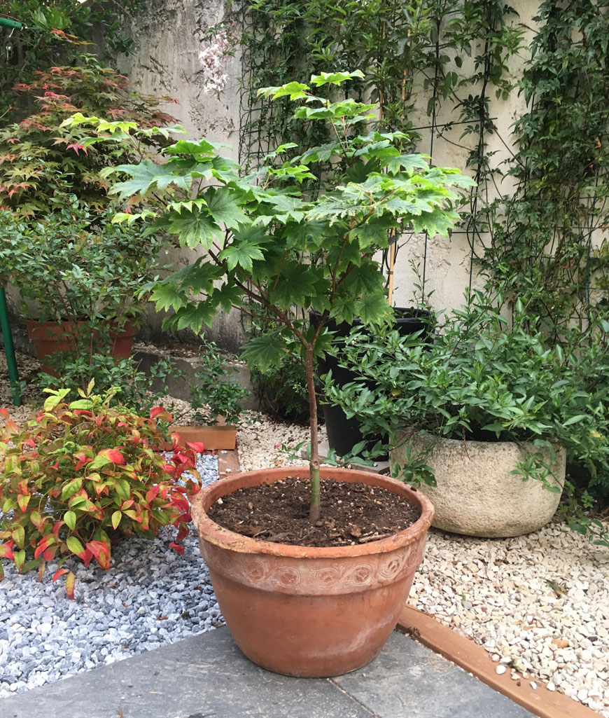 Acer japonicum vitifolium est un arbre puissant qui s'accommode d'un pot mais en perdant un peu de sa force.
