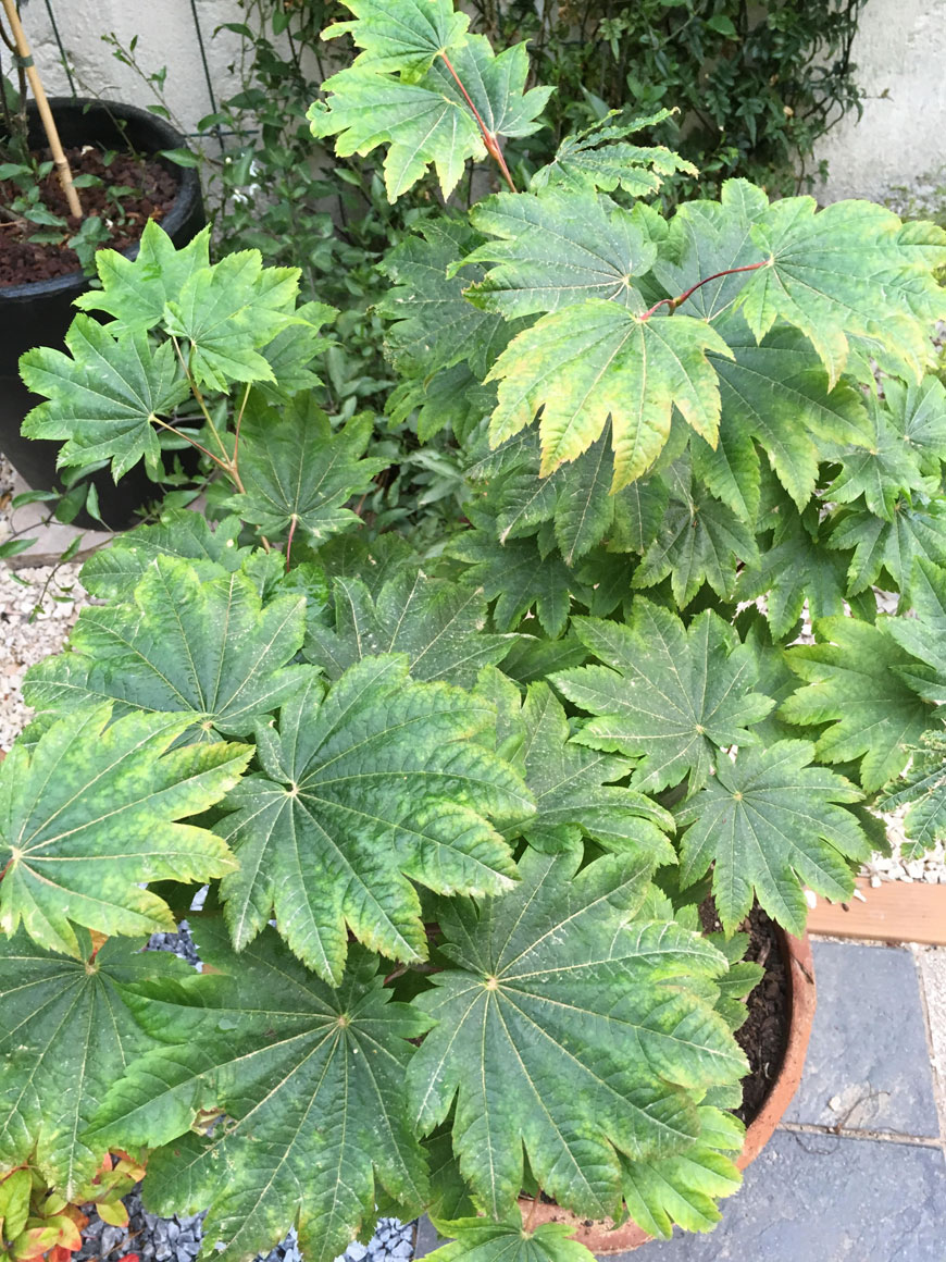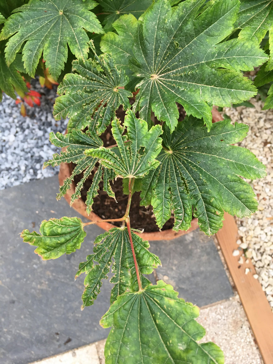 Les japonicum poussent mieux dans un substrat nettement acide. Quand tu le rempoteras, tu penseras à composer un substrat PH 5 à 6, avec un peu de tourbe bonde (pas de la brune) si tu en trouves.