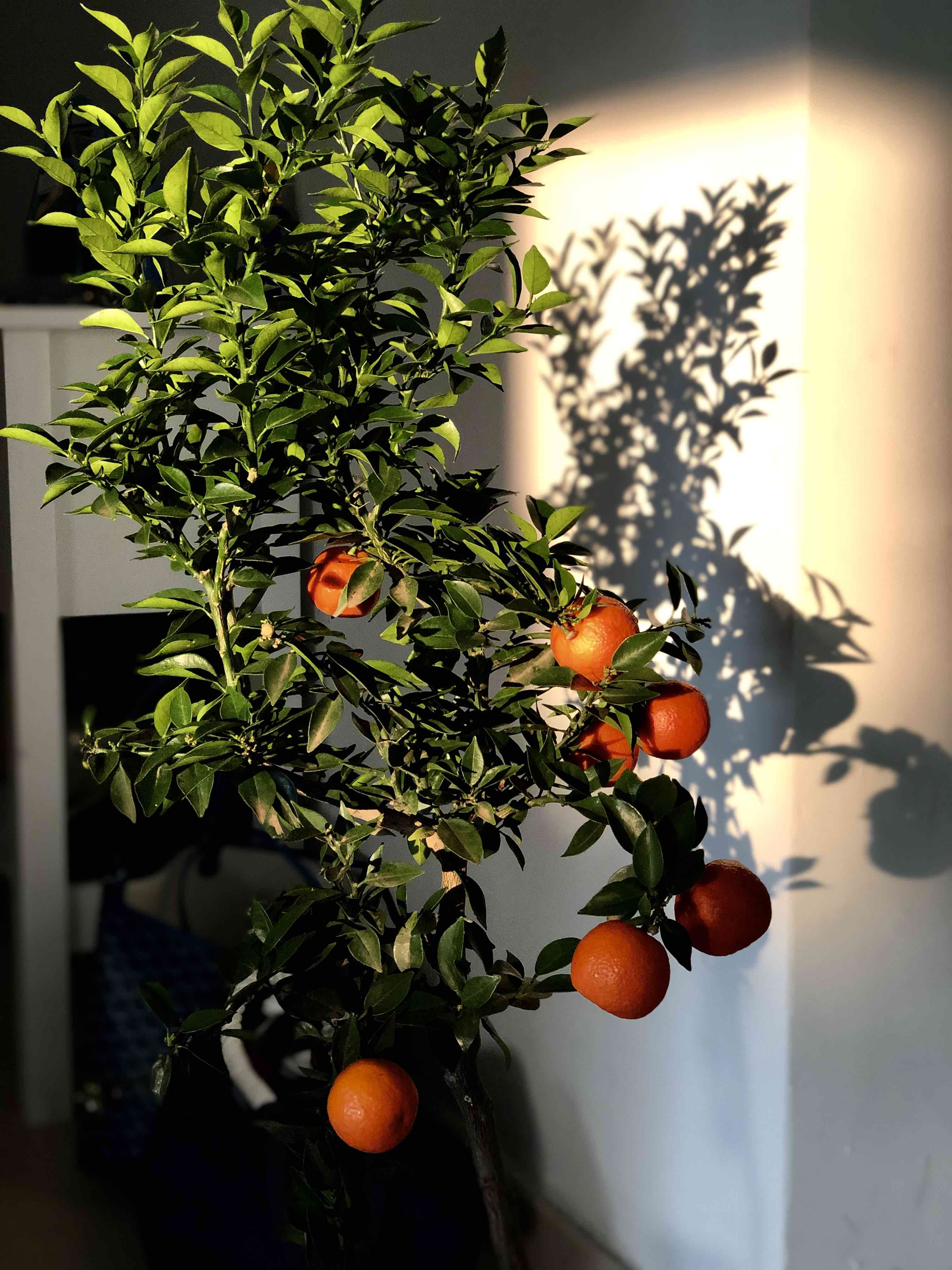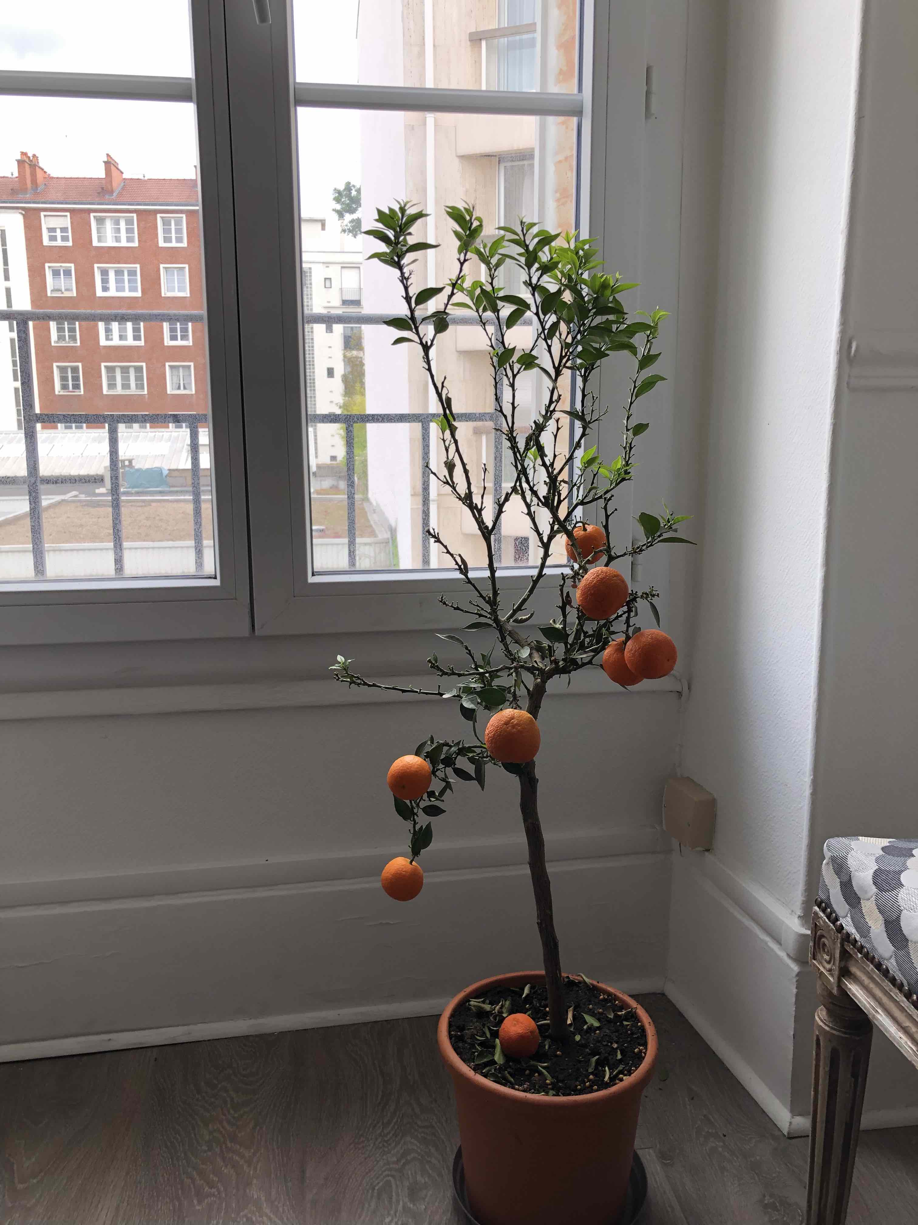 Le problème que je constate c'est que le volume végétatif de ton bigaradier se trouvait à l'emplacement des fruits et que tu l'as laissé évoluer sur un étage supérieur, je pense que tu peux essayer de le rééquilibrer en rabattant de moitié la partie haute et en supprimant la branche la plus basse.