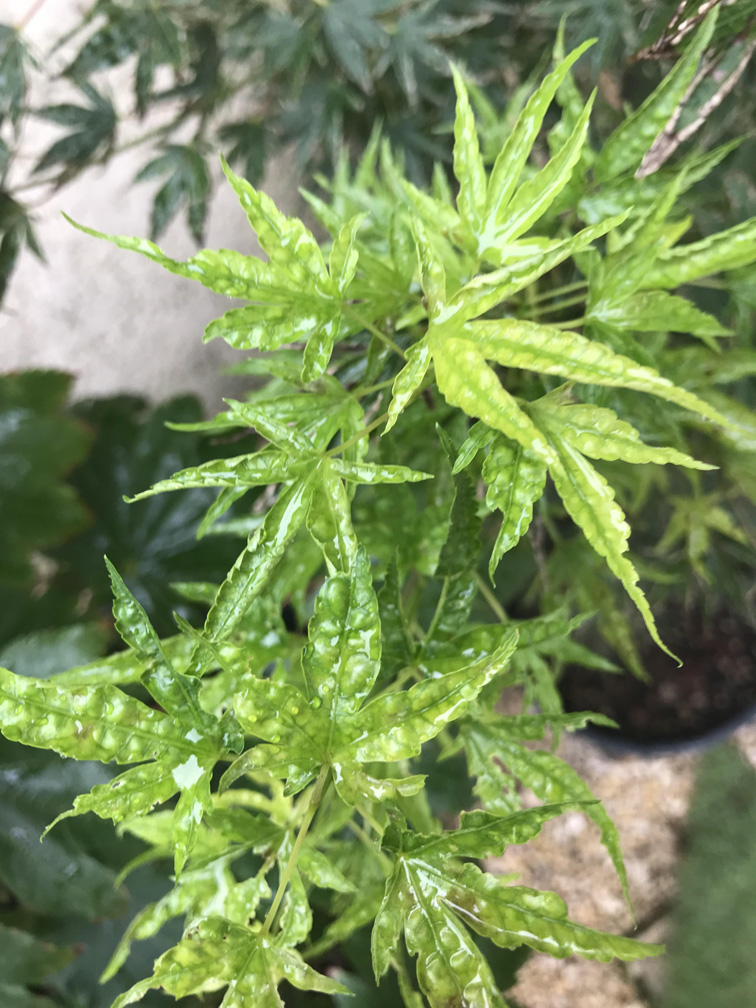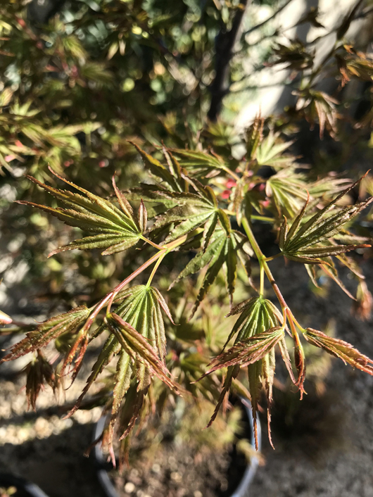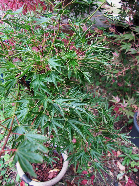 détail du feuillage, un cultivars atypique et très intéressant ! Pour info, il s'agit d'une très ancienne variété puisqu'elle est recensé depuis 1704 au Japon. Je ferais au printemps prochain une petite comparaison avec un cultivars très semblable, mais plus petit, 'kurui jishi'...