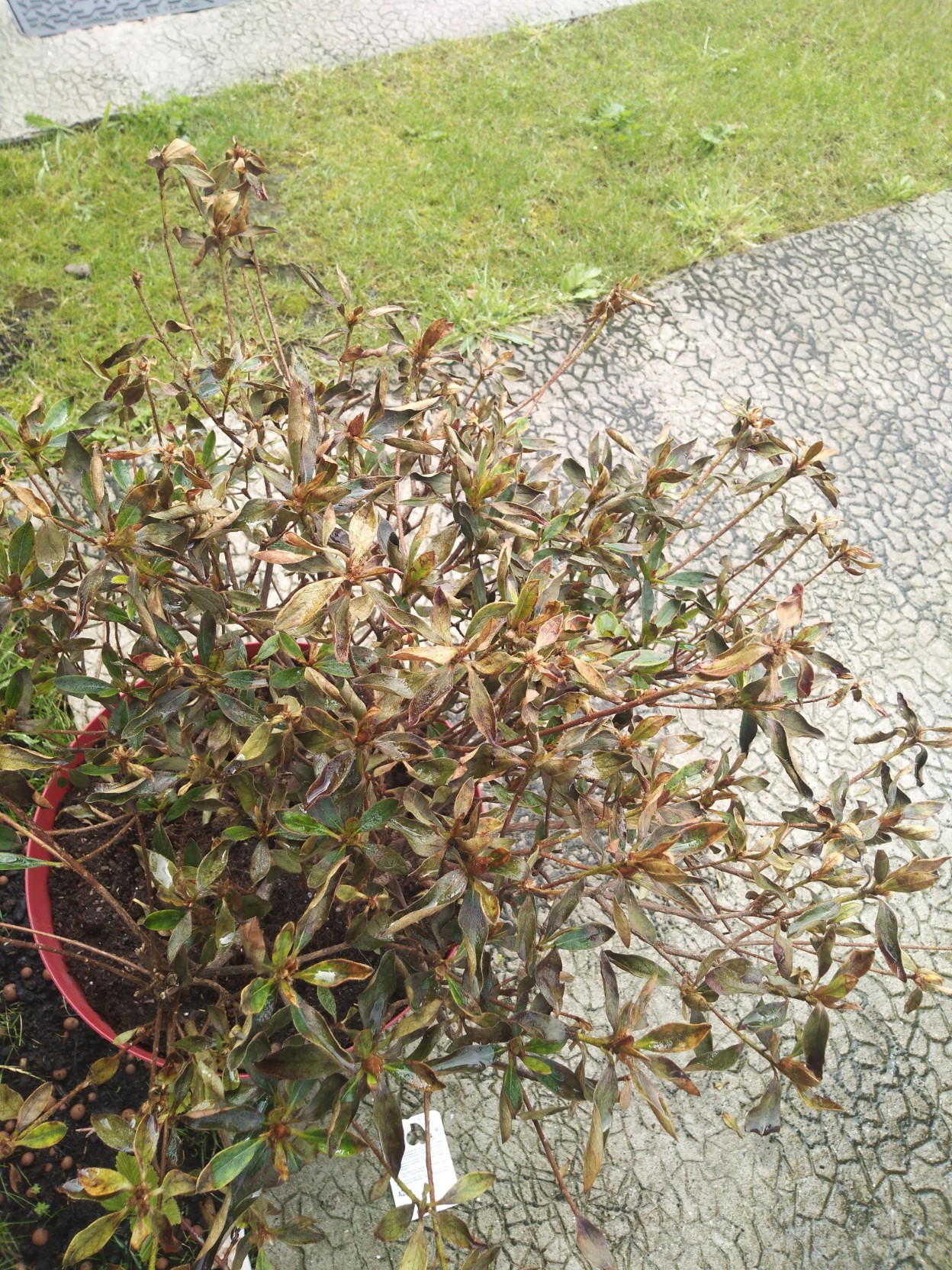 J'ai acheté une azalea japonica en pot pour ornement en terrasse. Je suis orienté ouest nord ouest. Le problème est que les feuilles flétrissent. Je l'ai remportée dans un pot un peu plus grand. J'ai fait l'erreur au début de ne mettre que du terreau universel, j'ai changé depuis et j'ai mis de la terre de bruyère depuis 3 semaines.. que faut il faire ? Ci joint une photo du patient malade. Merci