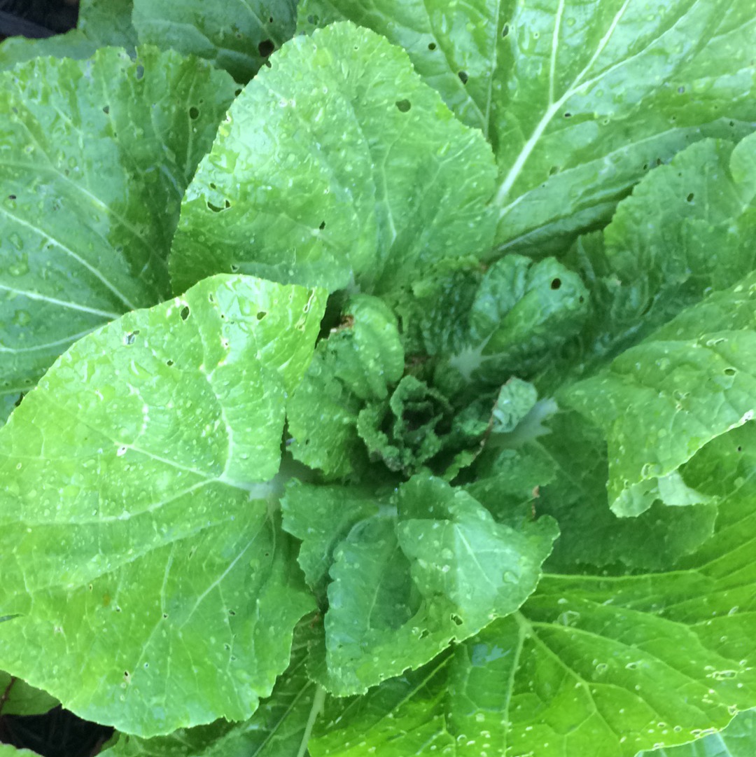 Un choux ''chinois' ' voir dans les pe tsai ,attaque d'altises classique en été