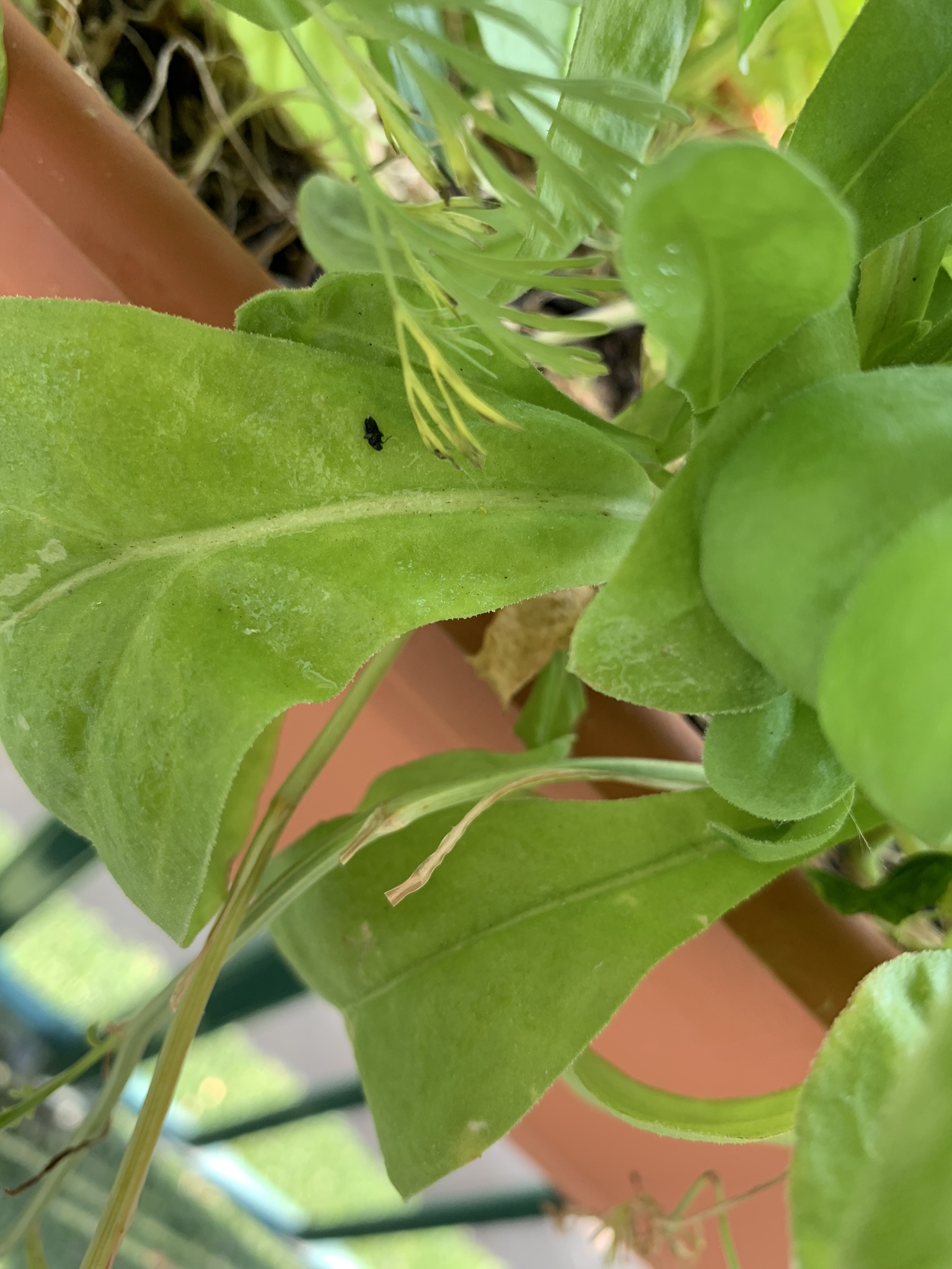 Je suis nouveau dans le forum et dans le jardinage. Depuis il y a quelques jours, un insecte volant noir très petit mange mes plantes et mes fleurs et crée des trous. Les photos sont ci-jointes.
