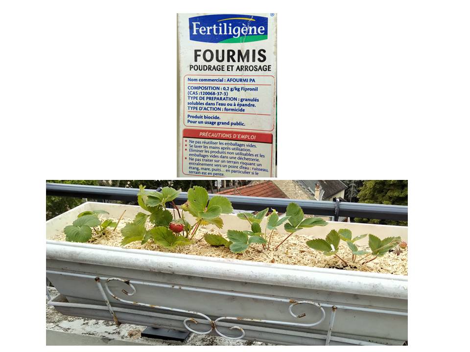 En rempotant les pieds de fraisiers des bois, j'ai eu la désagréable surprise de trouver des milliers (millions?) de fourmis dans la terre de chacun des bacs. Coïncidence ou pas, cette année les fraisiers n'ont pas donné beaucoup de fruits.
