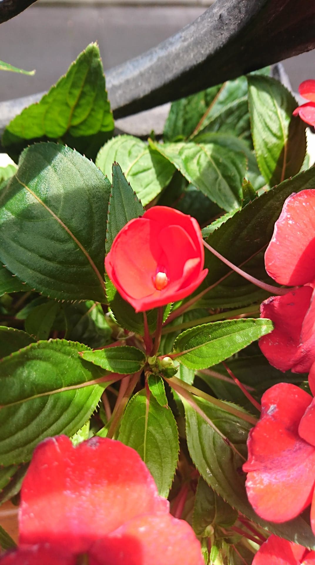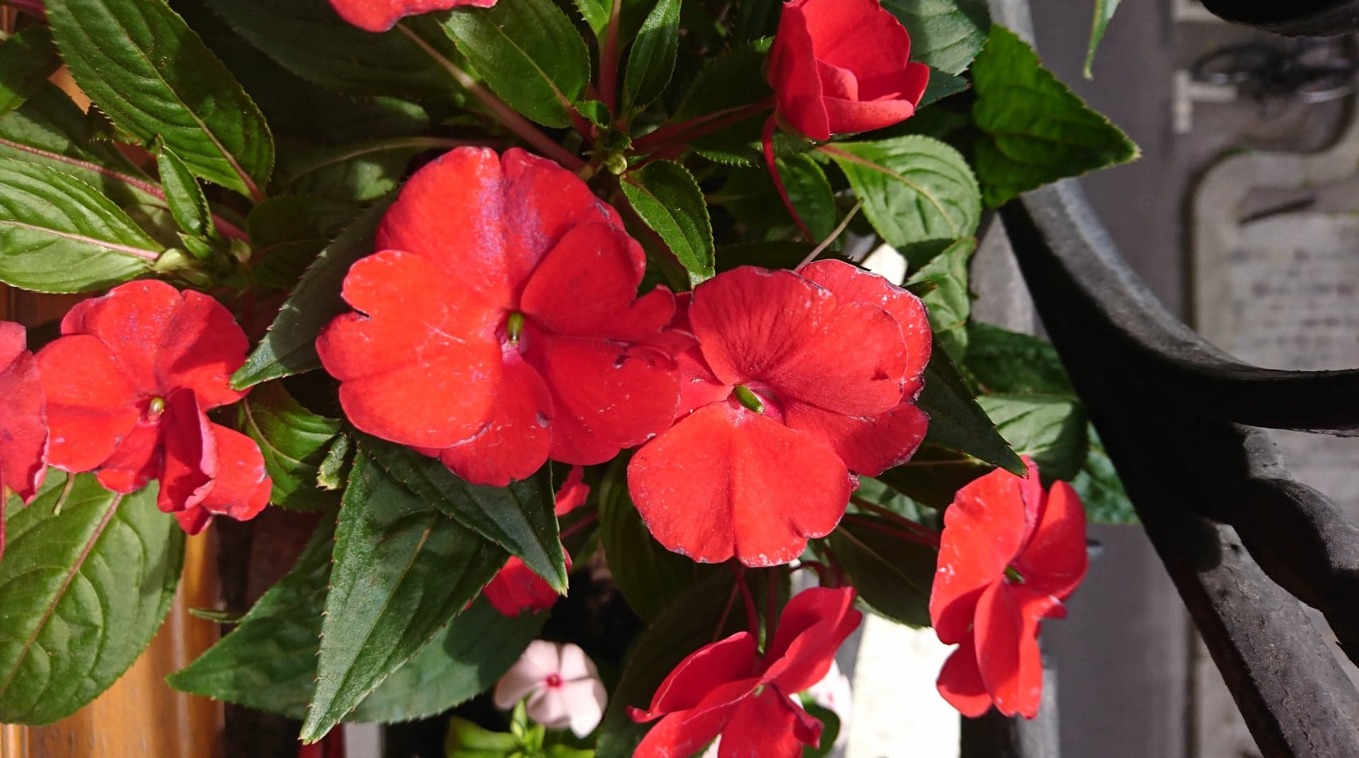 Je viens d'acquérir des Impatiens de Nouvelle-Guinée que j'ai installées dehors dans une jardinière à ma fenêtre (Paris, exposition Sud).