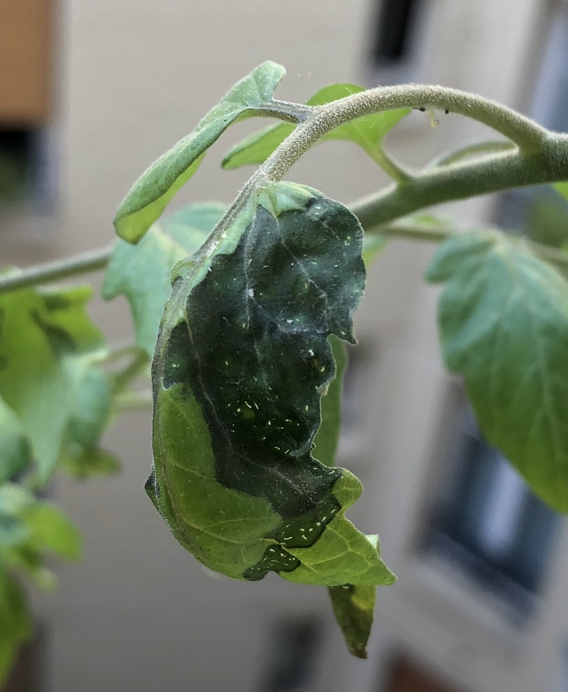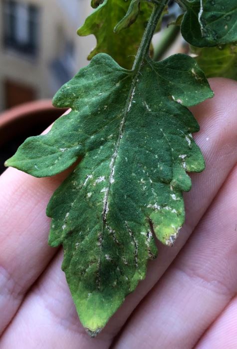 J’ai cru voir comme des petits vers sur les feuilles ce soir. Certaines virent au vert foncé, strié de petits traits blancs