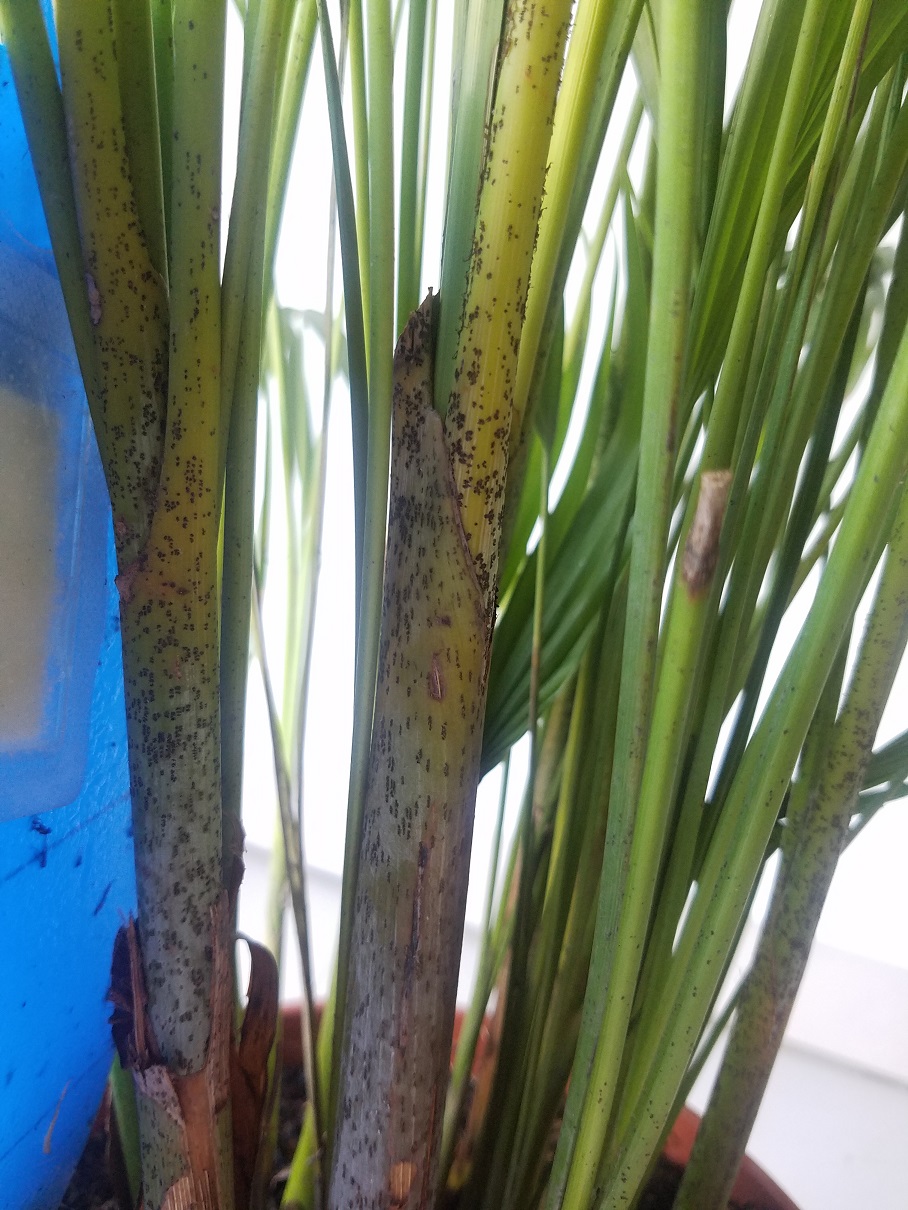J'ai récemment acheté un Areca et je me suis aperçu ce matin qu'il avait des tâches noires au niveau des pieds qui s'estompent en remontant.