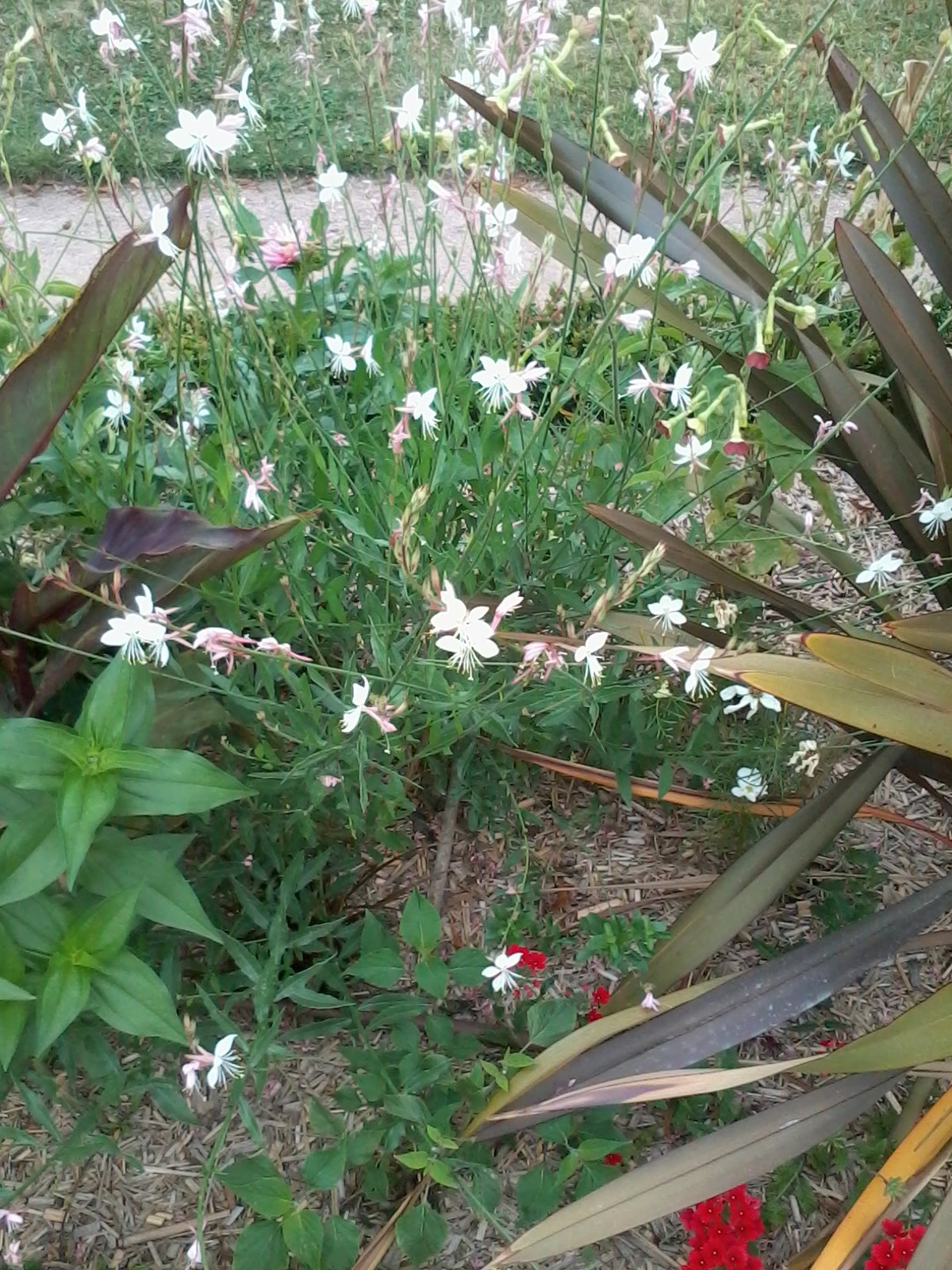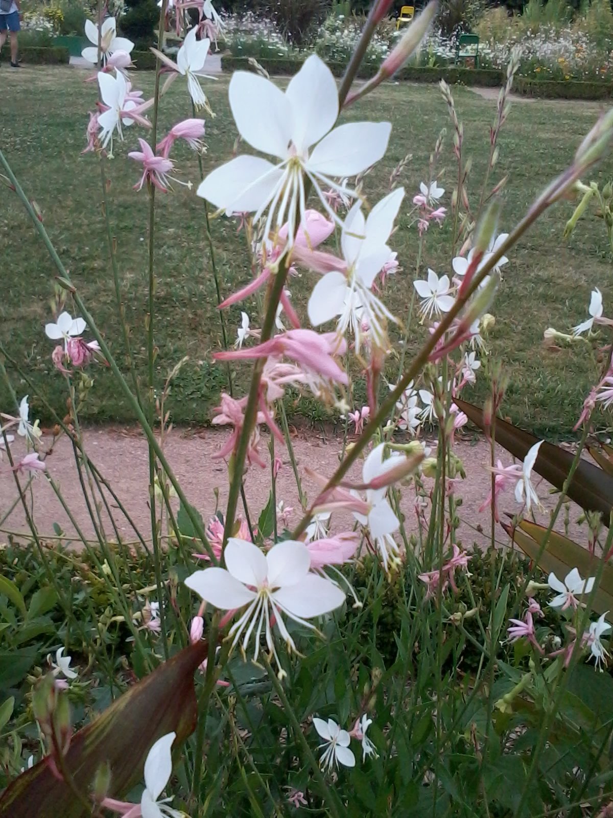 Il s'agit d'une plante à fleurs poussant dans un massif isolé, en plein soleil et dans un espace dégagé, elle dispose d'une longue tige d'une soixantaine de centimètres portant d'étonnantes fleurs, certaines blanches et d'autres roses, avec quatre pétales et une sorte de "plumeau" en dessous.