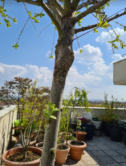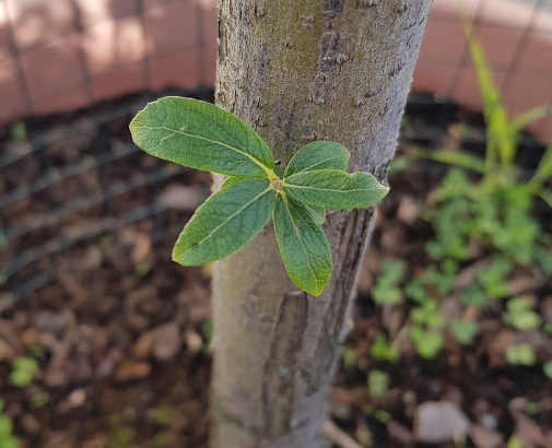 Mais cette "tige" ne donnera jamais de feuilles roses de saule crevette. Ce sont des repousses du porte greffe donc saule normal.