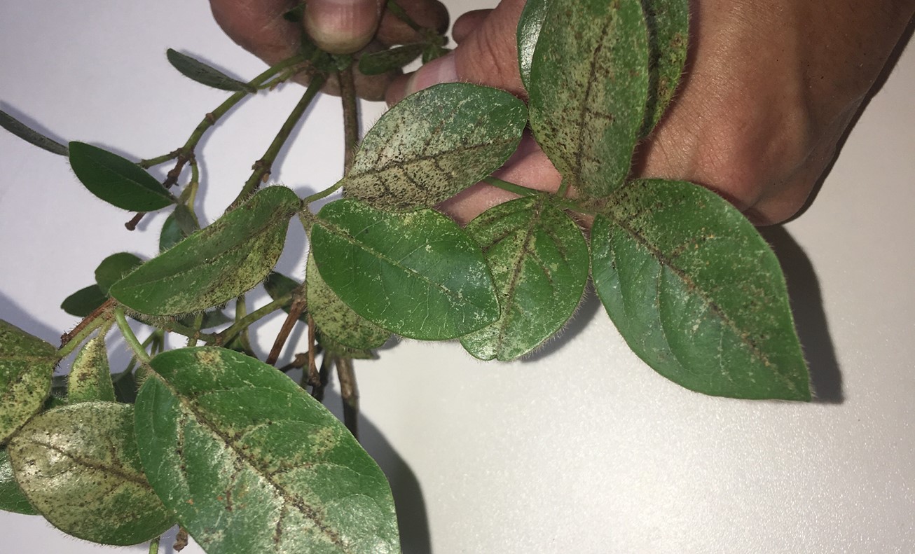 Bonjour. Je ne sais pas qui est à l'origine de ces décolorations, mais ce sont des attaques de piqueurs-suceurs. Il faut regarder de plus près les feuilles pour trouver les coupables. Peut-être des acariens (dans ce cas, le soufre est efficace surtout par ces t°C) ou bien des insectes. Vu les sortes de cadavres que l'on voit sur le dessus, je miserai sur des pucerons.