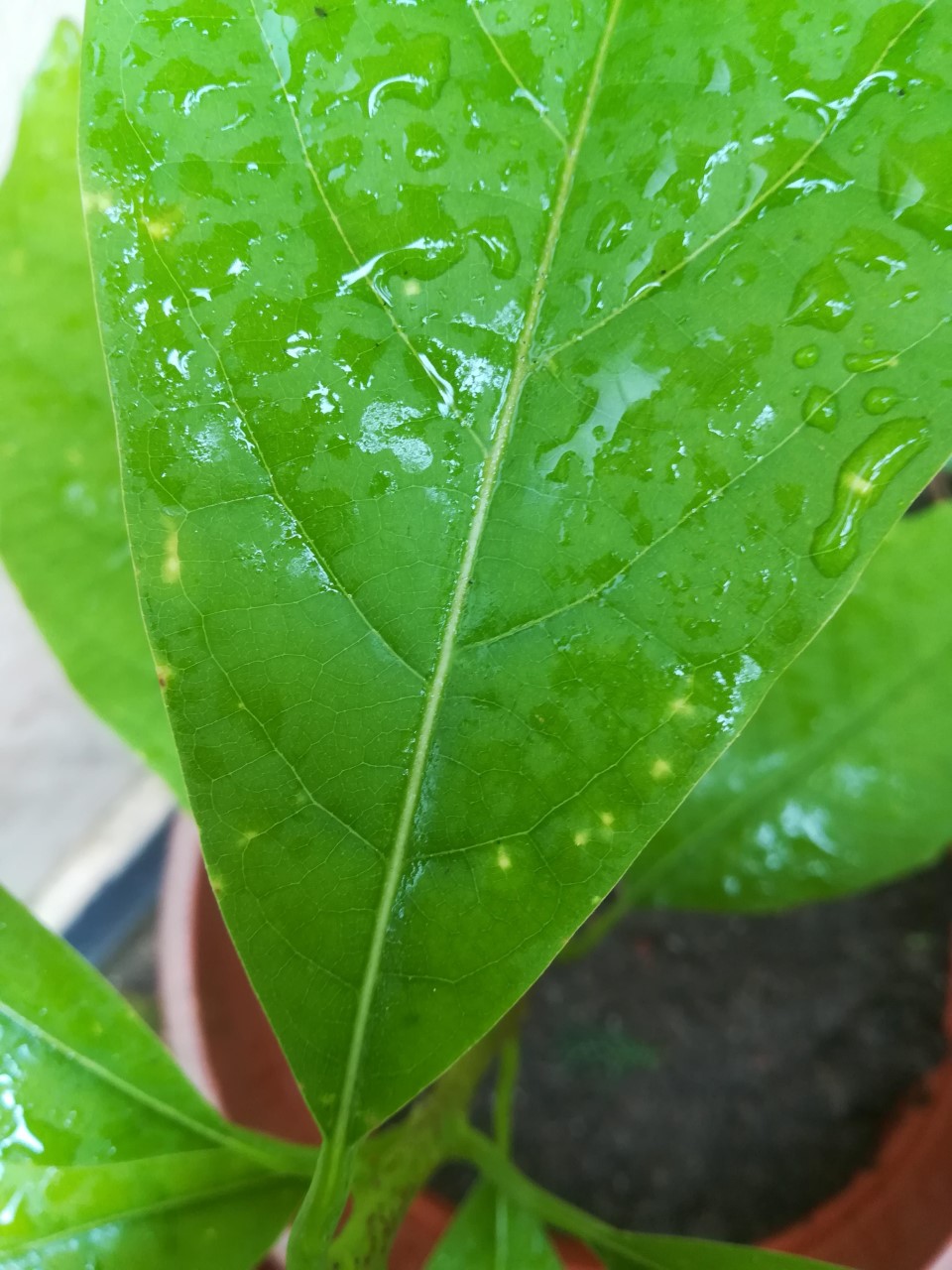 Depuis quelques temps, je remarque des petites tâches jaunâtres sur les feuilles (voir photo). Savez-vous de quoi il s'agit?