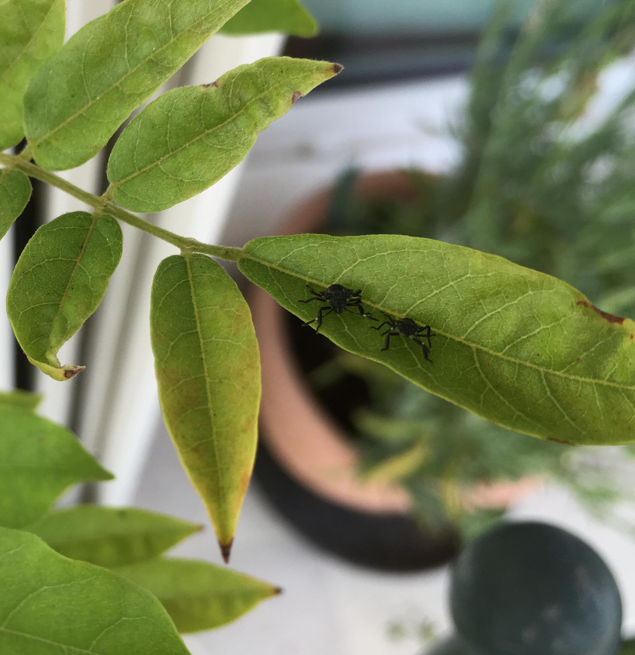 petits insectes noirs sur une glycine non loin de pieds de tomates
