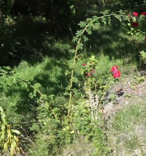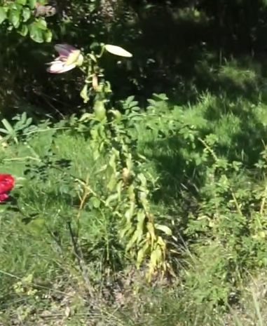 Plante étrange, avec des grandes tiges parsemées de feuille et, il semble, d'épines. Entourée de rosiers mais je ne crois pas que ça en fasse partie.. quoique...