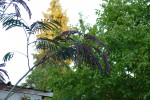 La photo du sommet de l'arbre (la moins abimée, elle culmine à 3m) est réalisée au téléobjectif depuis la terrasse, donc ce que vous voyez derrière est le figuier du voisin, non taillé à ma demande pour qu'il protège de ses feuilles les érables de mon côté.