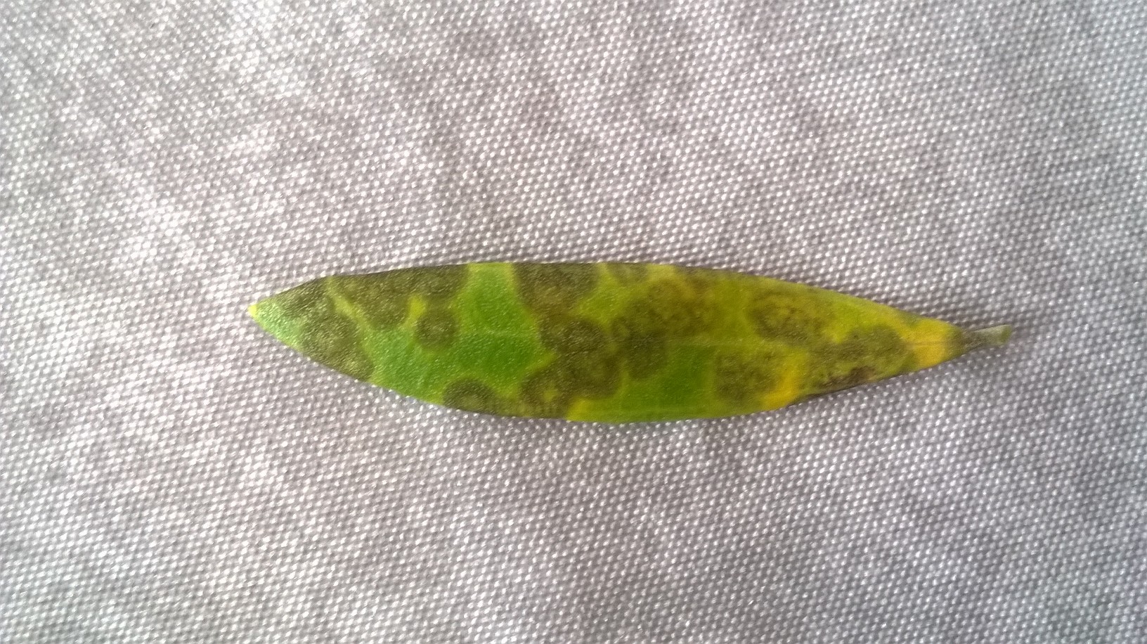 Bonjour, mon olivier après avoir fait trois en pot, a été mis en pleine terre il y a maintenant trois ans. Depuis le mois de juin, de nombreuses feuilles jaunissent et d'autres présentent des taches (voir cliché ci-joint). Quelqu'un est il en mesure de m'indiquer la raison de ce dépérissement ? (NB: l'an dernier il a perdu toutes ses feuilles mais est reparti et il y a actuellement UNE olive sur l'arbre)