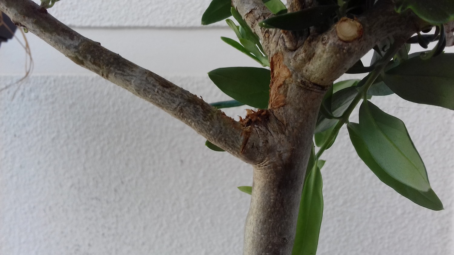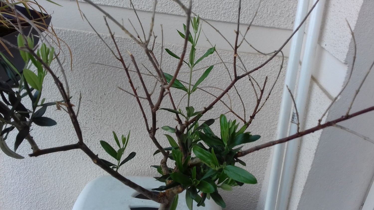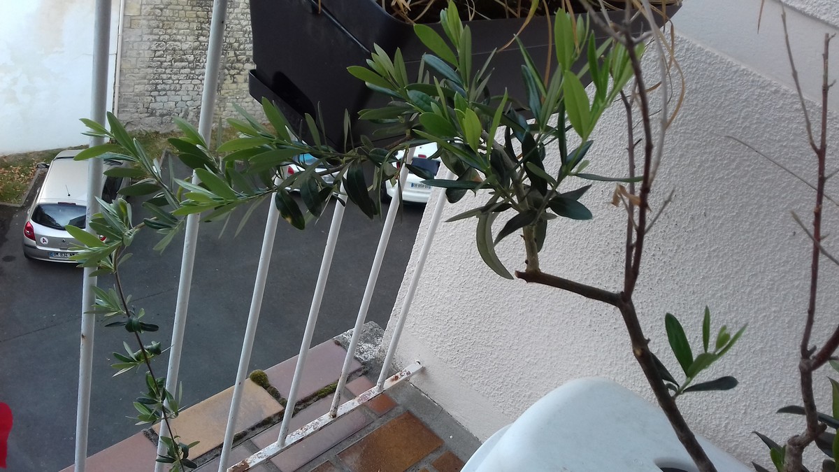 Il s'avère que c'est un olivier (en Normandie ! Aussi triste qu'un border collie en appartement...). Je lui ai balancé un litre et demi d'eau à peu près toutes les semaines, et malgré les sévices terribles qu'il a subit, il m'a fait la grâce de refaire des feuilles (d'un aspect normal cette fois), j'ai été très impressionné par sa résilience, alors maintenant il a un prénom (il s'appelle Rodrigue, alors si j'utilise machinalement ce nom pour le désigner il s'agit en fait de l'olivier...) et je m'y suis pas mal attaché...