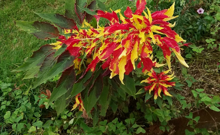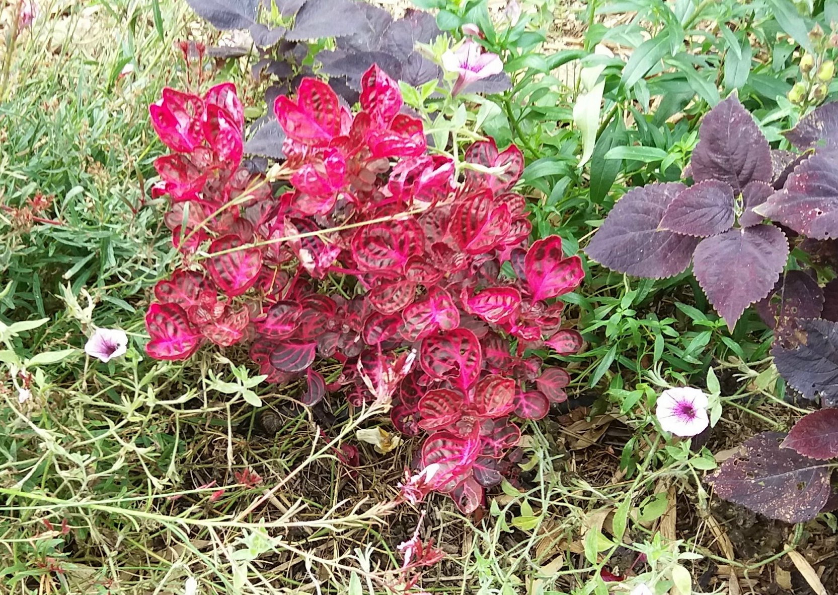 il y a des coleus sur la photo de part et d'autre de l'Iresine ; on voit bien la différence