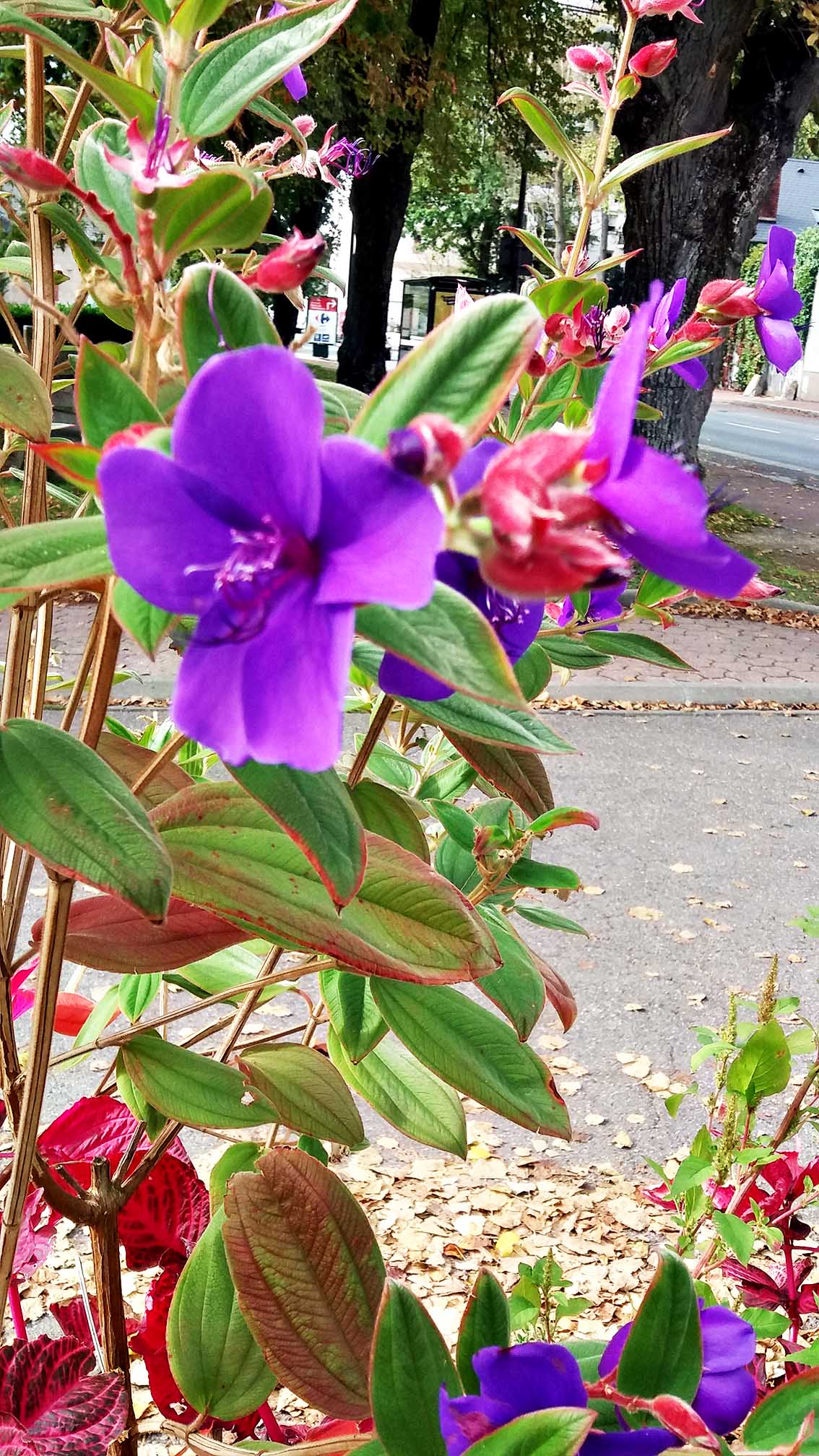 Une belle exotique : Tibouchina ; la plus fréquente en culture ici étant urvilleana