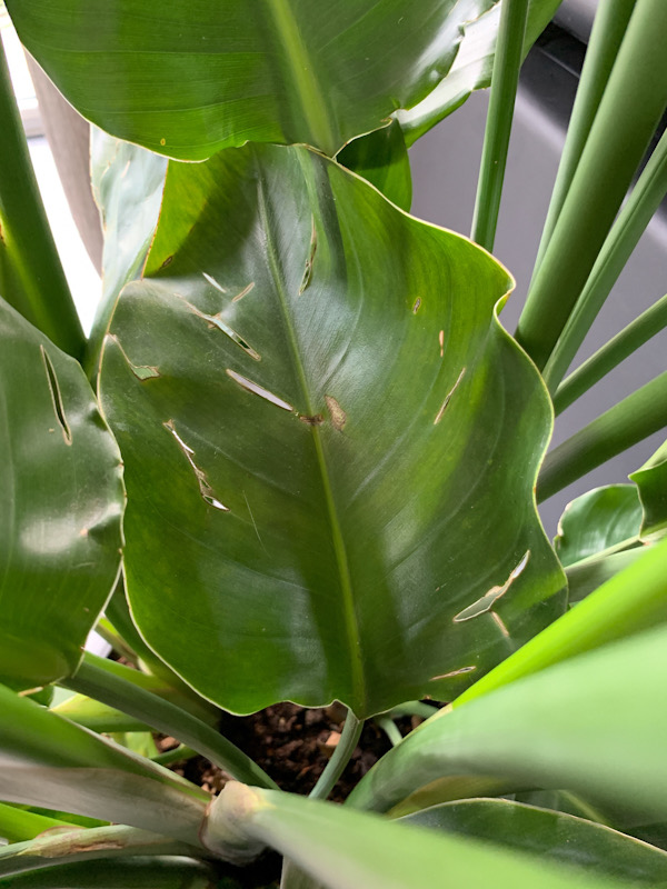 Strelitzia nicolai feuilles qui brunissent