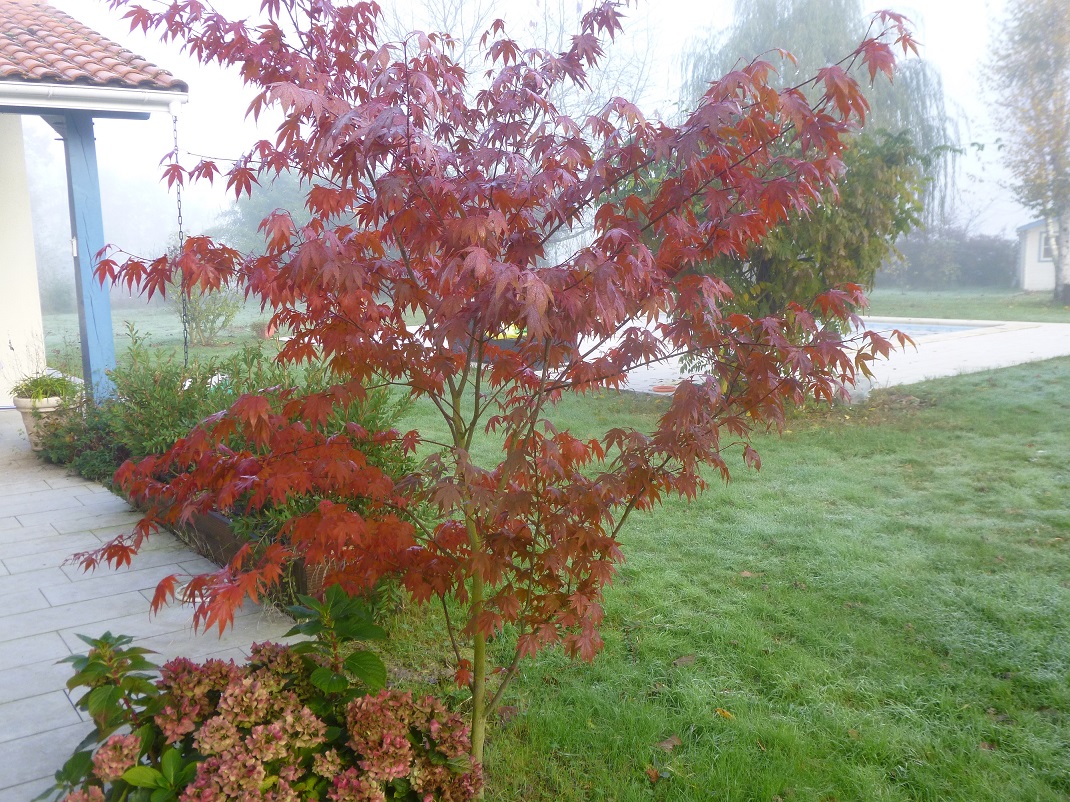 Le mien est de loin le plus rouge du jardin et ce depuis 2 semaines. Il commence à perdre ses feuilles.
