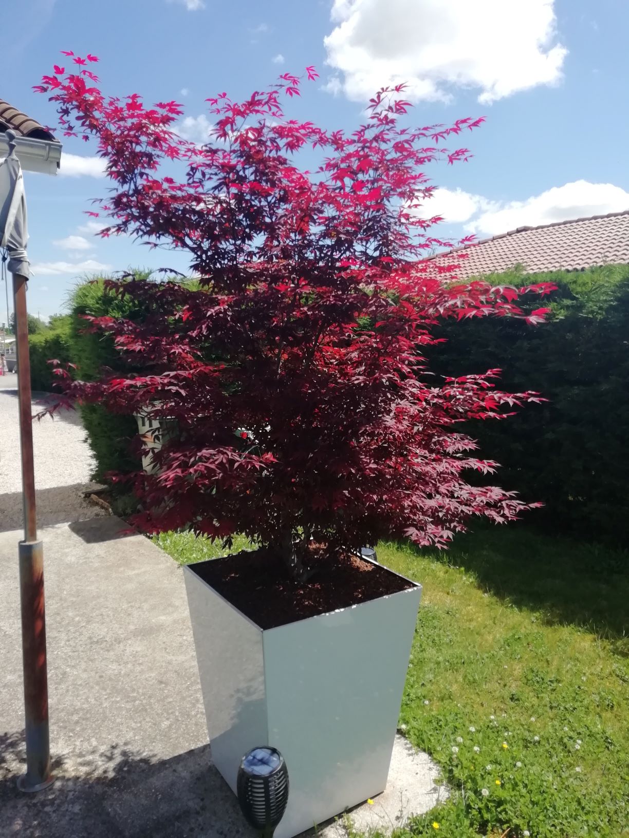 Voici mon érable atropurpureum exposé plein Ouest, il a du soleil quasiment toute la journée, il se porte magnifiquement bien