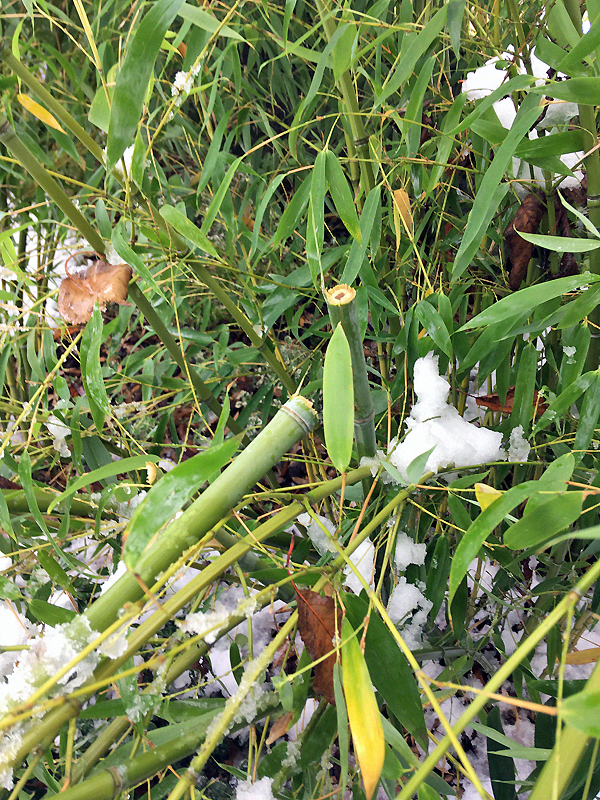 Ne t'inquiète pas pour tes bambous,cela m'arrive chaque année,et sitôt la neige fondue,ils se relève doucement pour reprendre