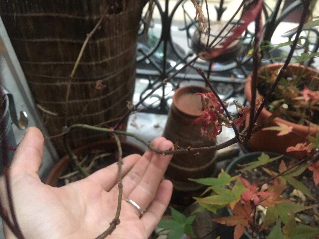 l'erable a eu quelques passages difficiles avec un déménagement et la canicule cet été, mais ses feuilles étaient reparties, belles et rouges, elles sont toutes (sauf une) tombées hier avant d'avoir atteint leur couleur brune.