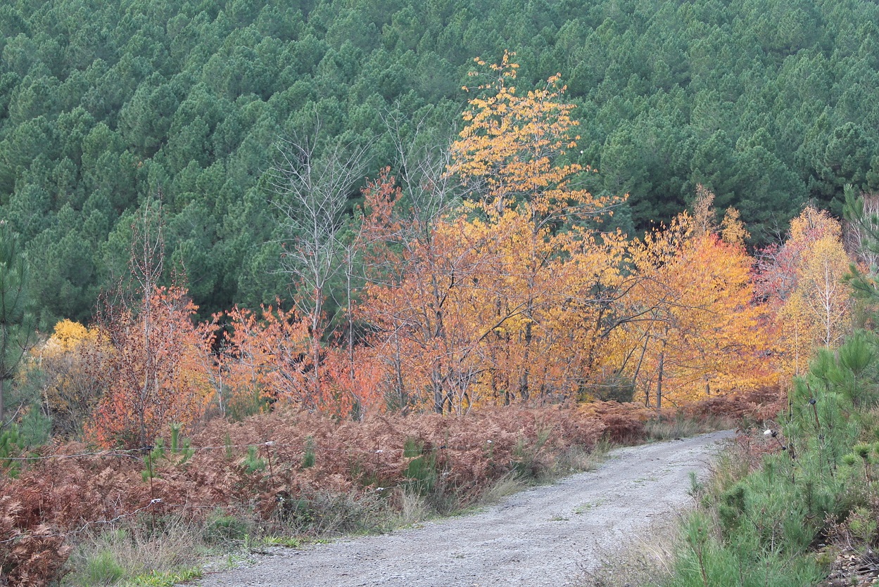 Avec toutes les pluies que l'on a eu, les troncs sont humides et noirs et font ressortir les couleurs des chênes.