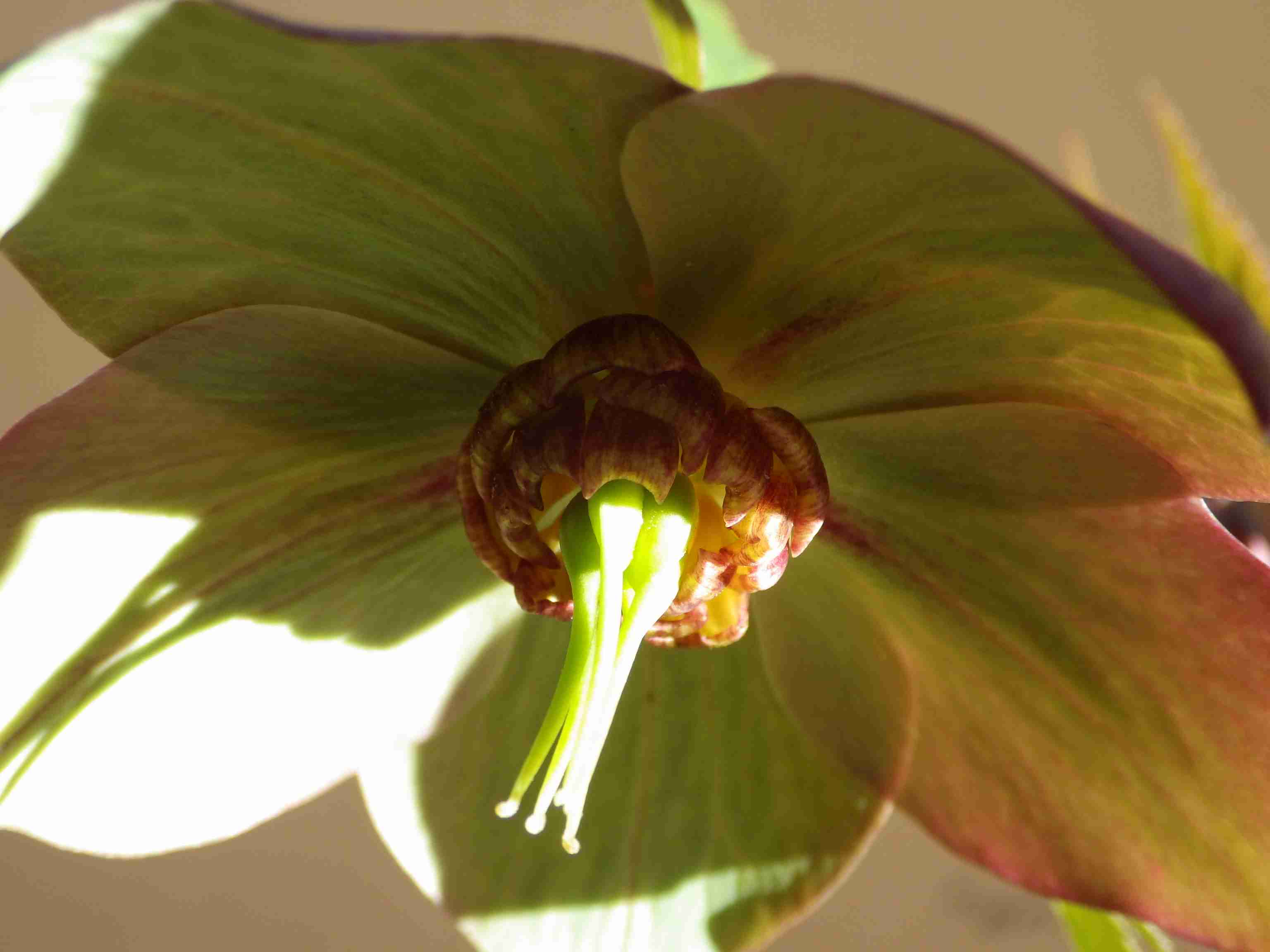 J'ai placé à l'abri les plantes gélives qui fleurissent au printemps ou en été (étant un peu fainéante, j'ai essentiellement des vivaces, mais j'arrive de cette façon à garder un dipladenia d'une année sur l'autre), les plantes qui sont restées cet hiver sur la terrasse sont vivaces, très rustiques, mais pas du tout fleuries en hiver !!!