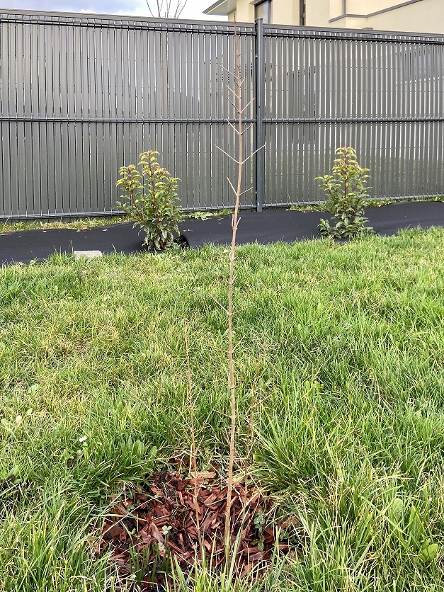 Le petit érable qu'il faudra que je taille pour le former, qui fait désormais presque un mètre (planté en janvier 2019) :