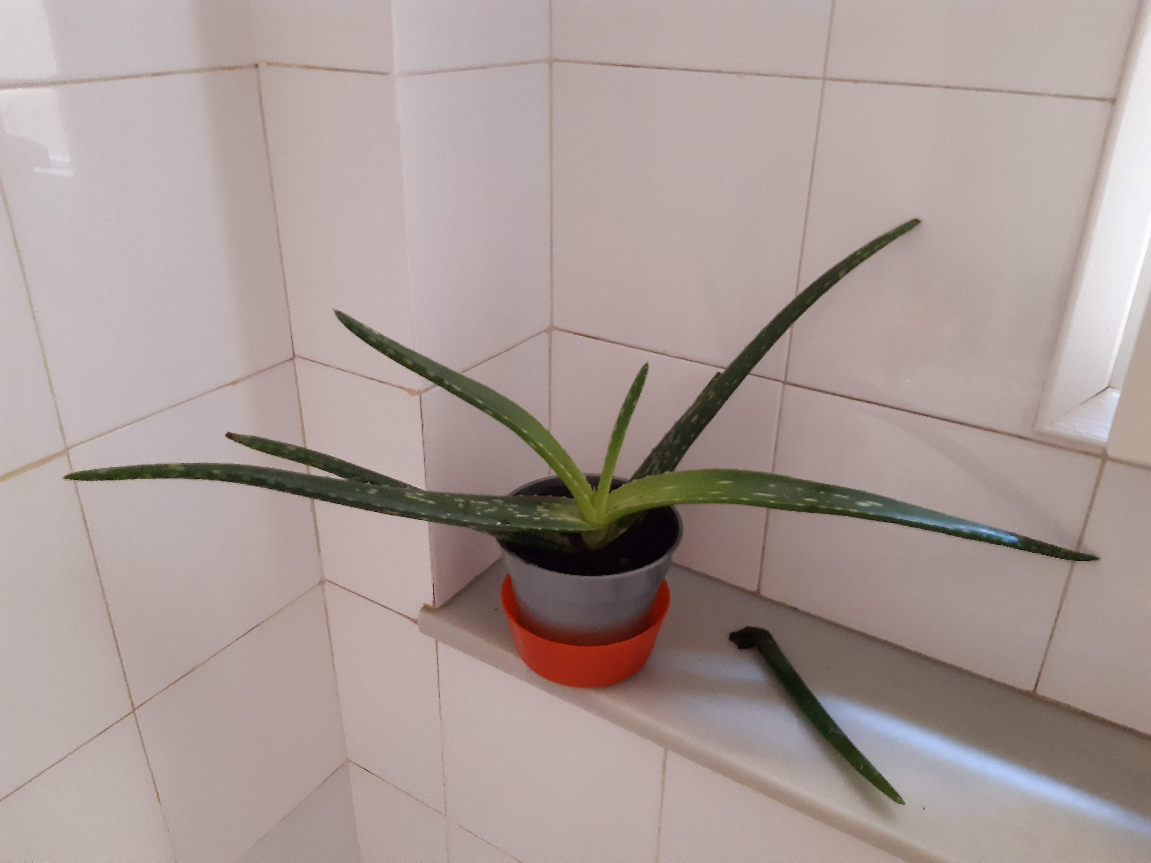 J'ai un peu peur aussi que l'humidité de la salle de bain finisse par lui déplaire tout à fait. Si tu as une pièce plus sèche et avec une bonne exposition, déplace le là, juste devant la fenêtre, il poussera encore mieux.