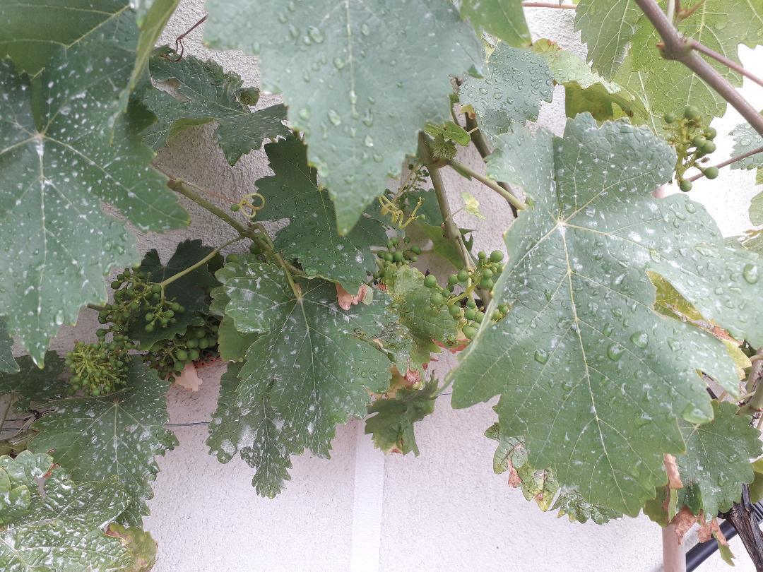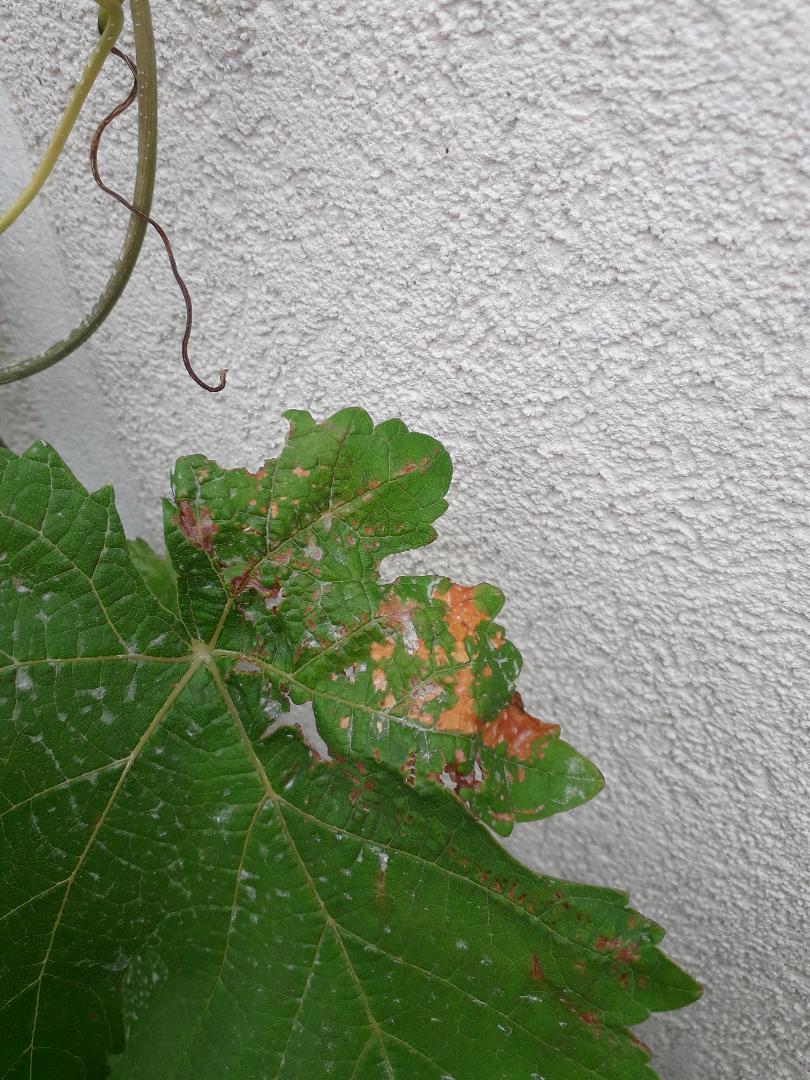 La vigne semble bien se porter. Je continue mes pulvérisations de soufre. J'ai remarqué des trucs sur 2/3 feuilles. S'agit il d'une maladie ou rien de grave?