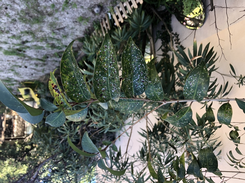 Les feuilles de plusieurs arbres sont recouvertes de points blancs (un laurier, un olivier, des troènes : photo ci-jointes)