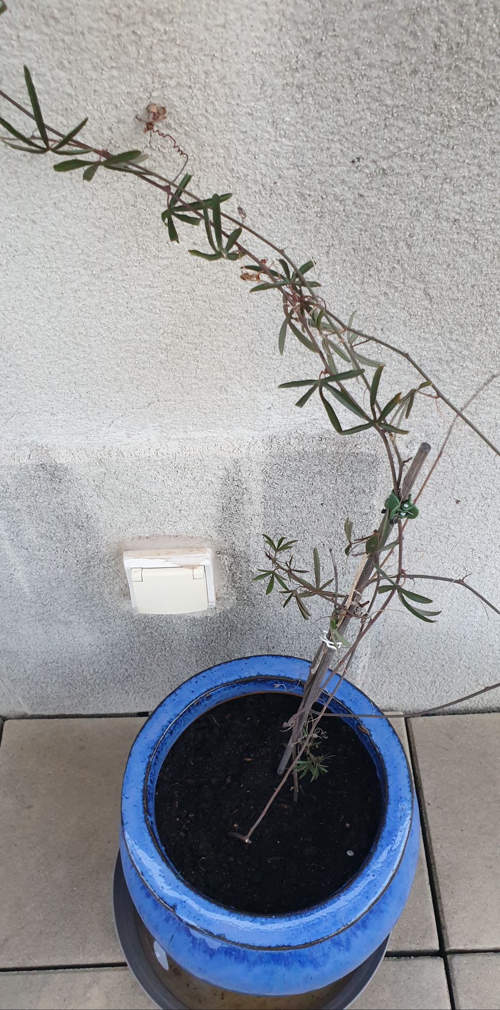 Je viens d'acheter un appartement avec une grande terrasse. L'ancienne propriétaire m'a laissé une plante un petit peu fatiguée je le reconnais. Je n'ai pas du tout de connaissance en jardinage et je viens vous demander de l'aide. Avez-vous une idée du nom de la plante et puis-je espérer quelque chose ? Des fleurs etc.