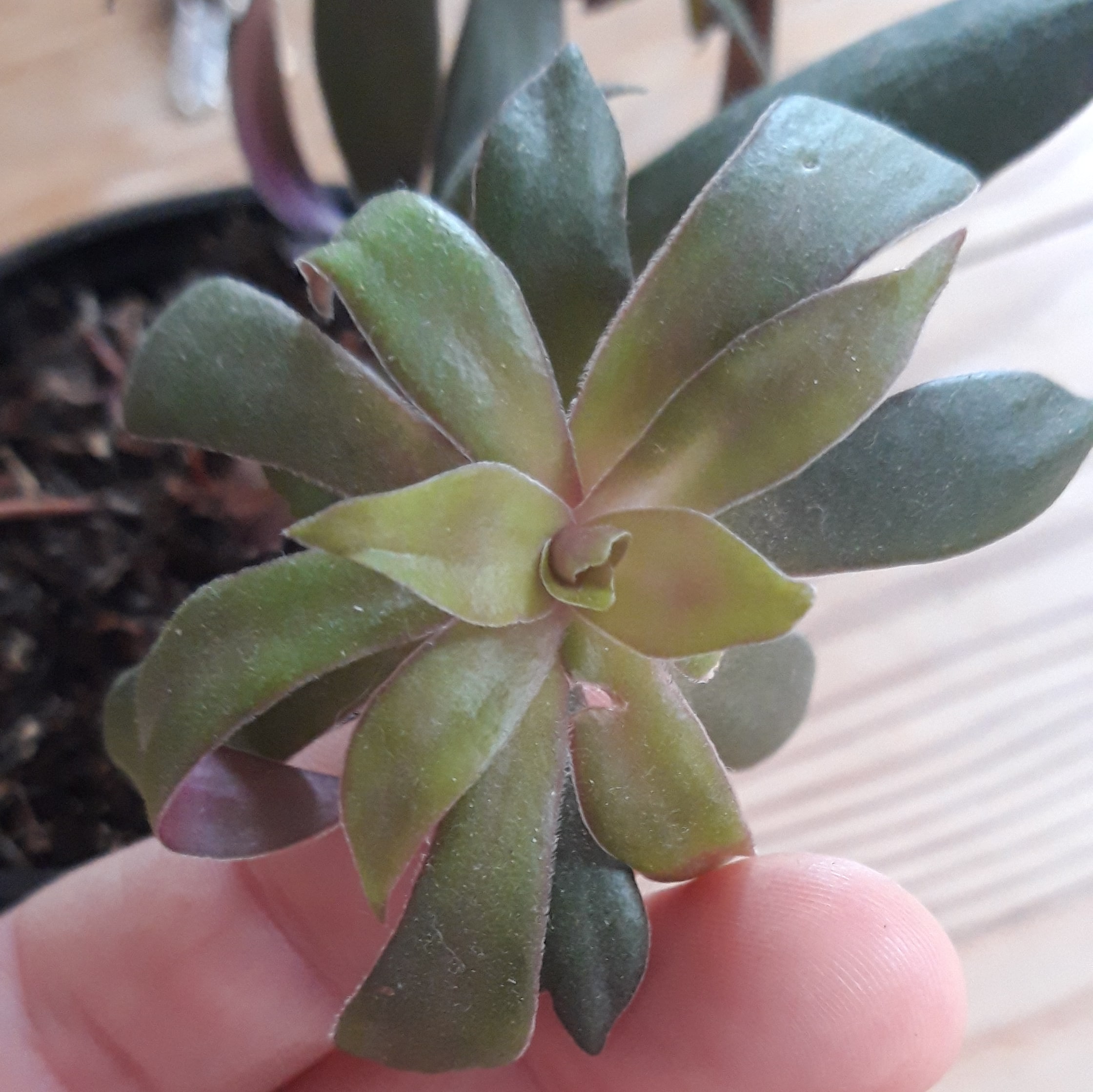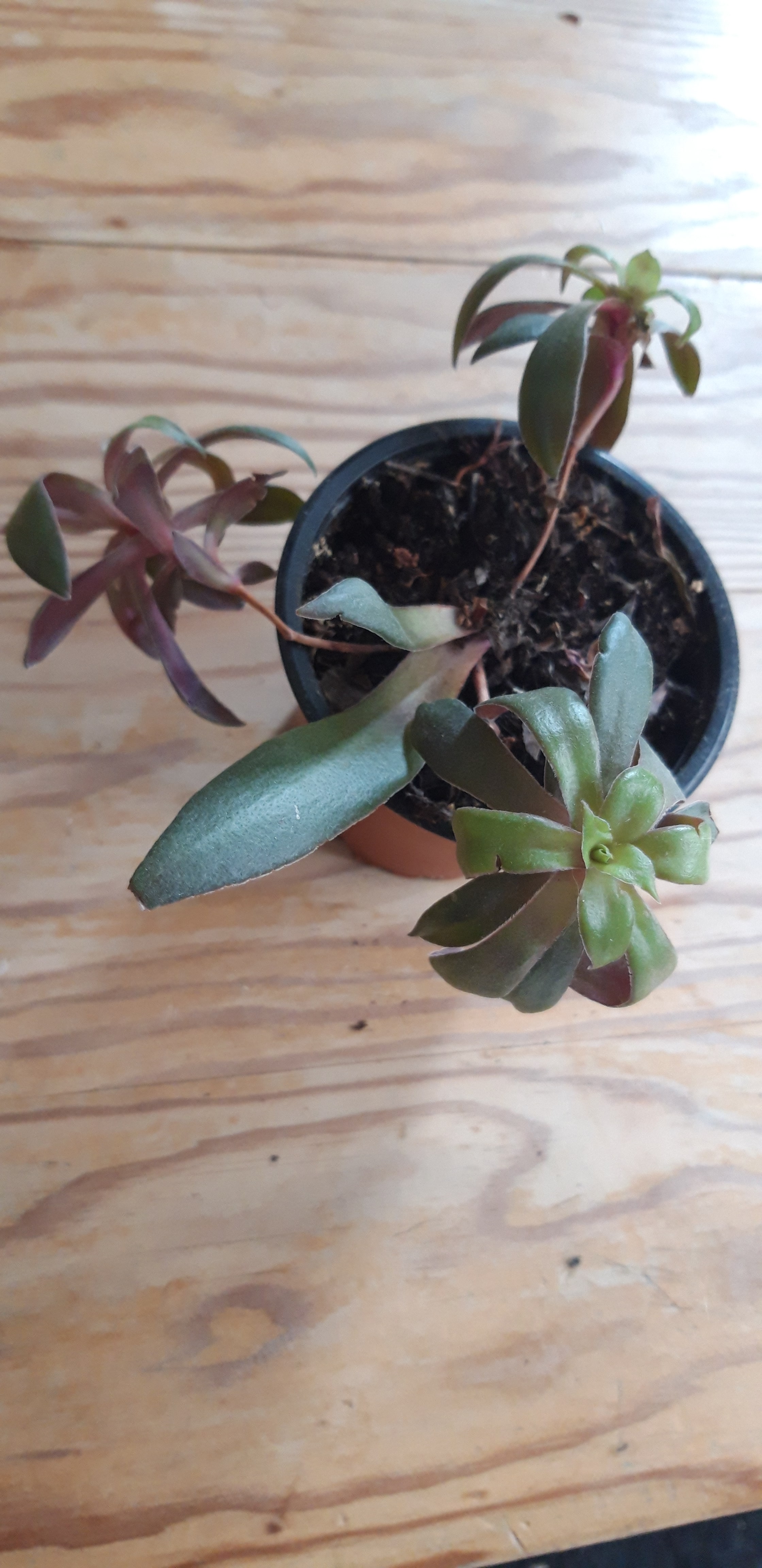 Je te remercie pour ta réponse. En réalité elle n'est pas si déformée. Certe elle a été noyée ce qui lui a fait perdre ses premières feuilles centrales (dont il ne reste plus que les 2 grandes feuilles au milieu), mais ce n'est pas le même type de rosace que l'aeonium, et l'echeveria. Les feuilles sont plus espacées et moins solidaires entre elles. Les deux feuilles du milieu ont leur taille d'origine (taille maximale), et les trois ramifications partent de la base de la première rosace (qui n'existe plus) ce qui explique qu'ils soient sur branche, ce n'est pas une quête de lumière.