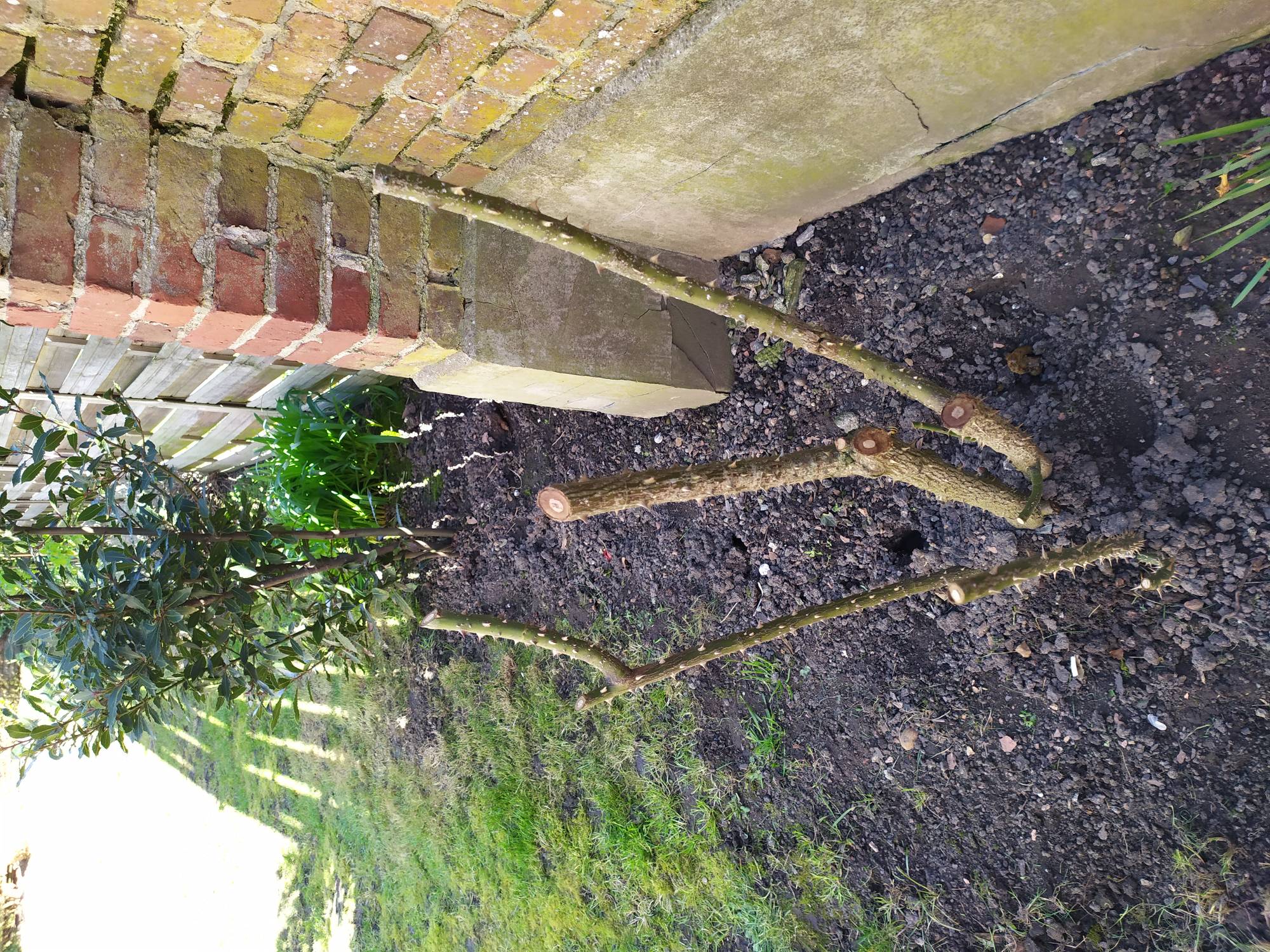 J'ai retiré aussi ce que je pense être un gourmand, la branche qui partait de bien en dessous du point de greffe et qui sortait de sol à un bon 15-20cm du reste.
