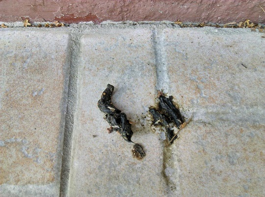 Près de ces crottes, j'ai repéré une touffe de poils blancs au sol sur un passage abrasif, une autre fois la touffe de poils blancs le long de notre porte de garage à 1m du sol, et une autre fois sur des dalles près de trous de souris dans le jardin. L'an dernier, j'entendais régulièrement un animal qui semble loger sous nos tuiles (pas de combles, juste un isolant), on peut l'entendre à la tombée de la nuit et au lever du jour marcher sur le toit et sans doute soulever une tuile. On l'a parfois entendu gratter, une fois faire une course poursuite (période du rut je crois).