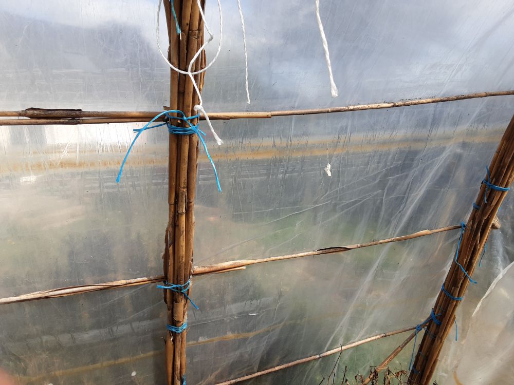 Je protège certaines zones des arceaux avec de la toile de jute pour ne pas risquer de percer la bâche.