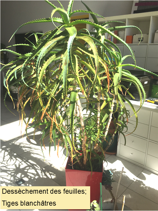 Mon ALOE VERA a subi une attaque de colchnilles. Je l'ai sans doute trop aspergé de épulsif au savon noir...et voilà les dégâts…